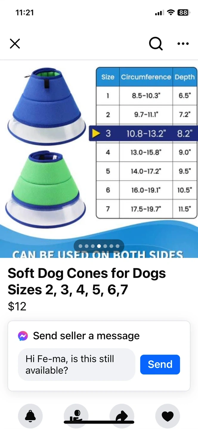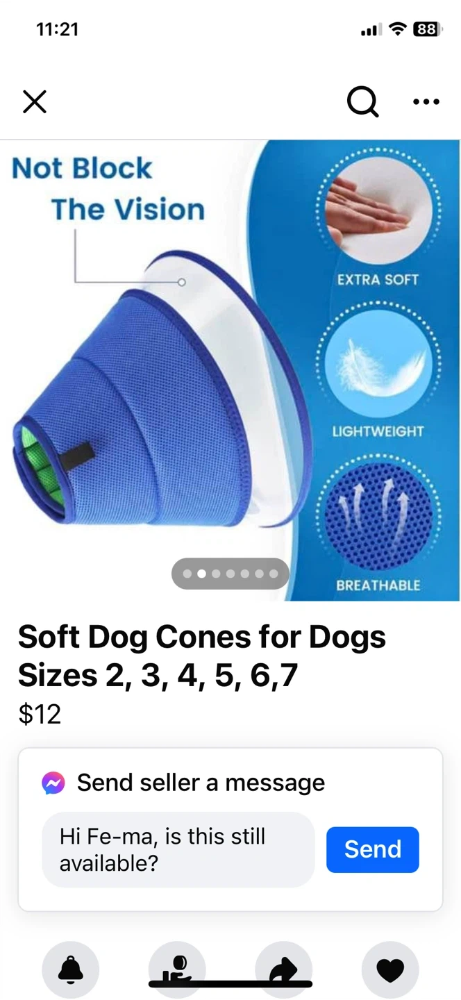 36Selling a soft dog cone in different sizes. It's designed to be extra soft, lightweight, and breathable for your furry friend. This cone won't block their vision and can be used on both sides