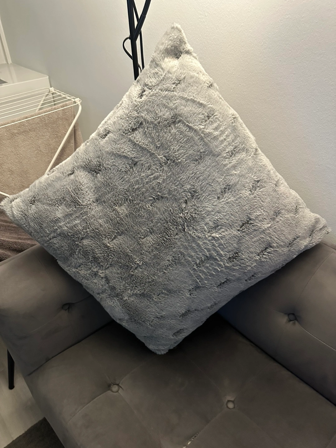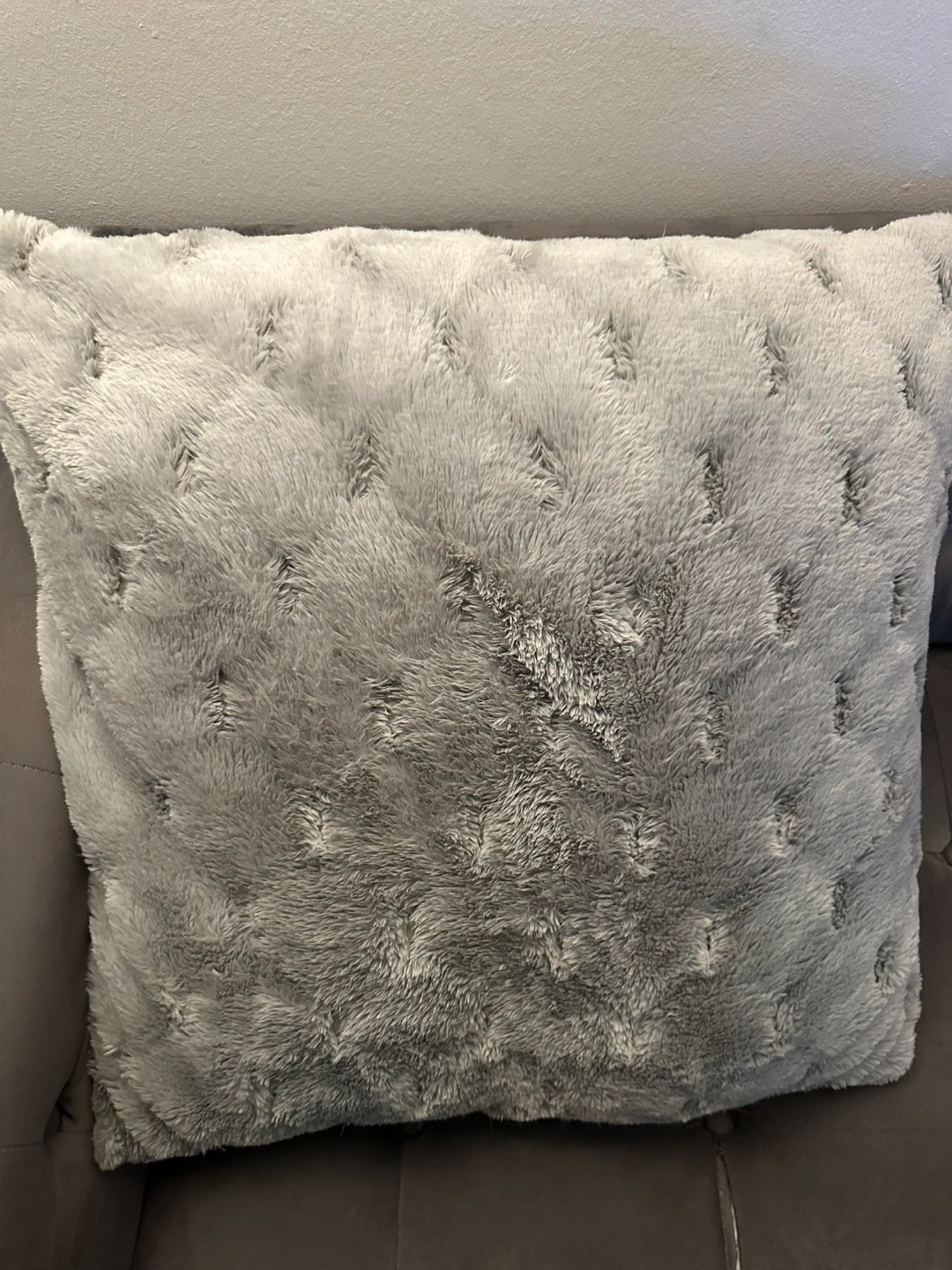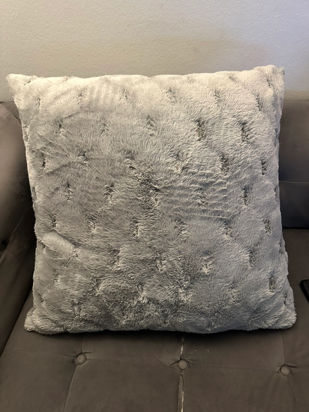 Add a touch of cozy luxury to your space with this plush grey faux fur throw pillow. Measuring approximately 18"x18", it features a soft, textured surface that's perfect for your couch, bed, or reading nook. Gently used and in excellent condition with no stains or damage. Great for home decor or as an accent piece. Pickup only. Price negotiable. Message for details!