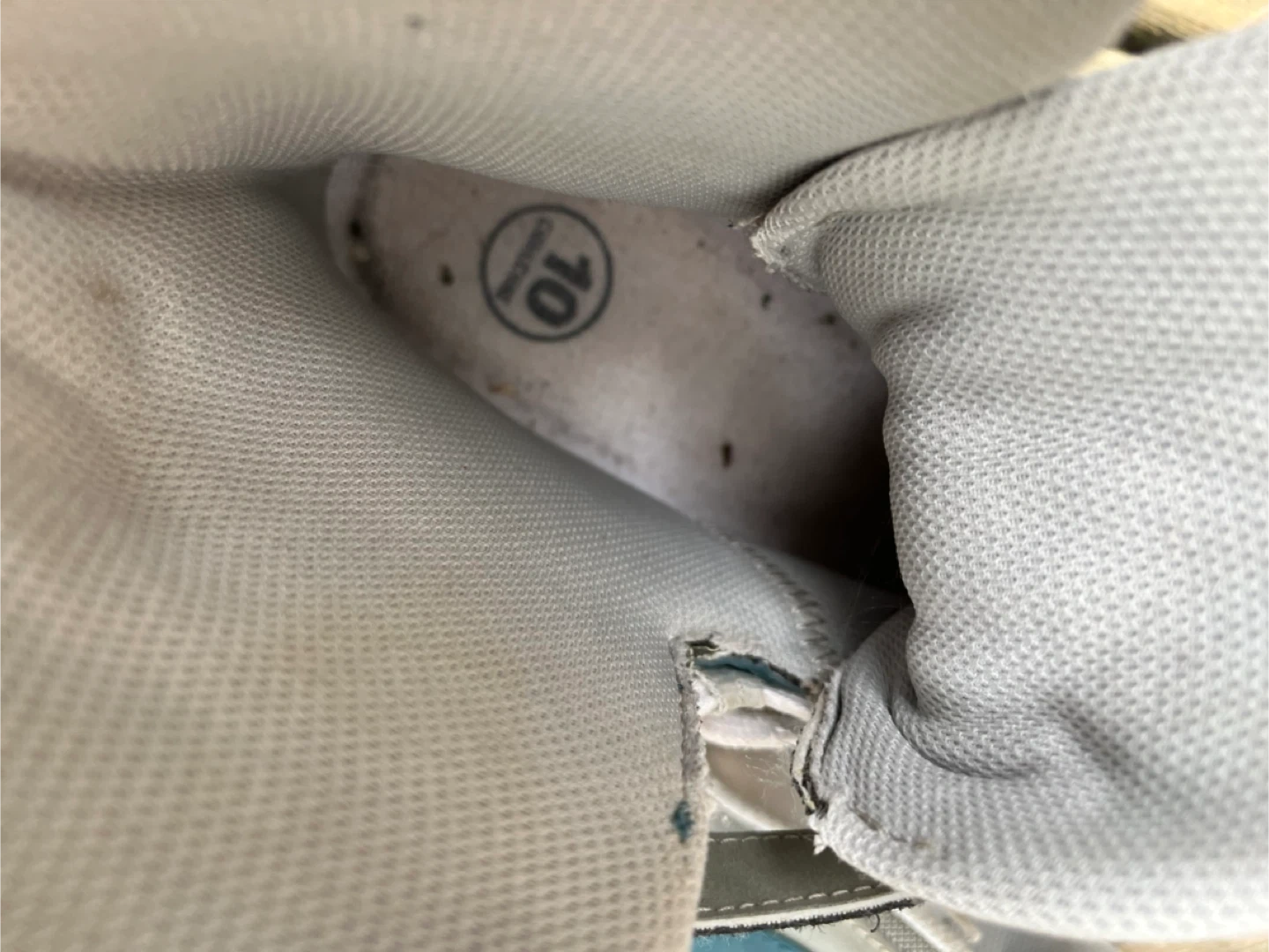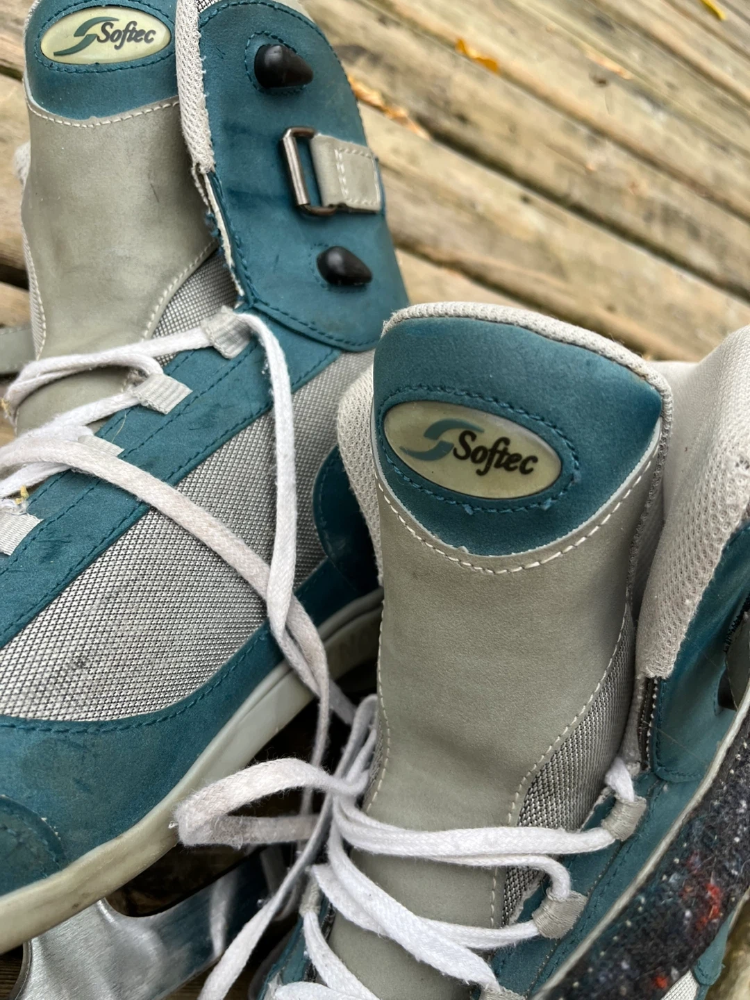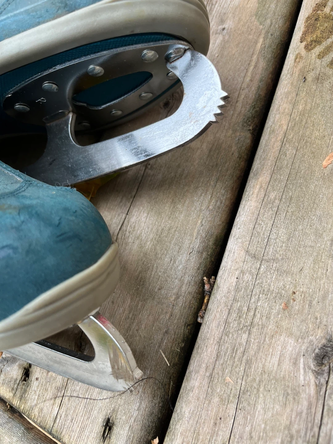 Selling a pair of Softec ice skates in size 10. They are a teal and grey colour and have some signs of wear. The blade size is 10 2/3.