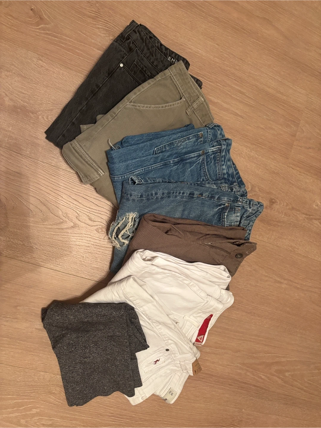 A bundle of eight pairs of women's pants in various styles and colours!