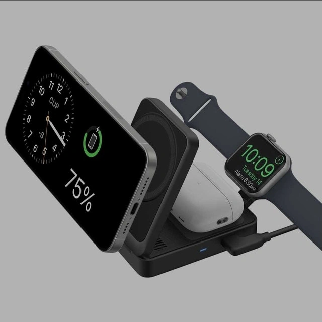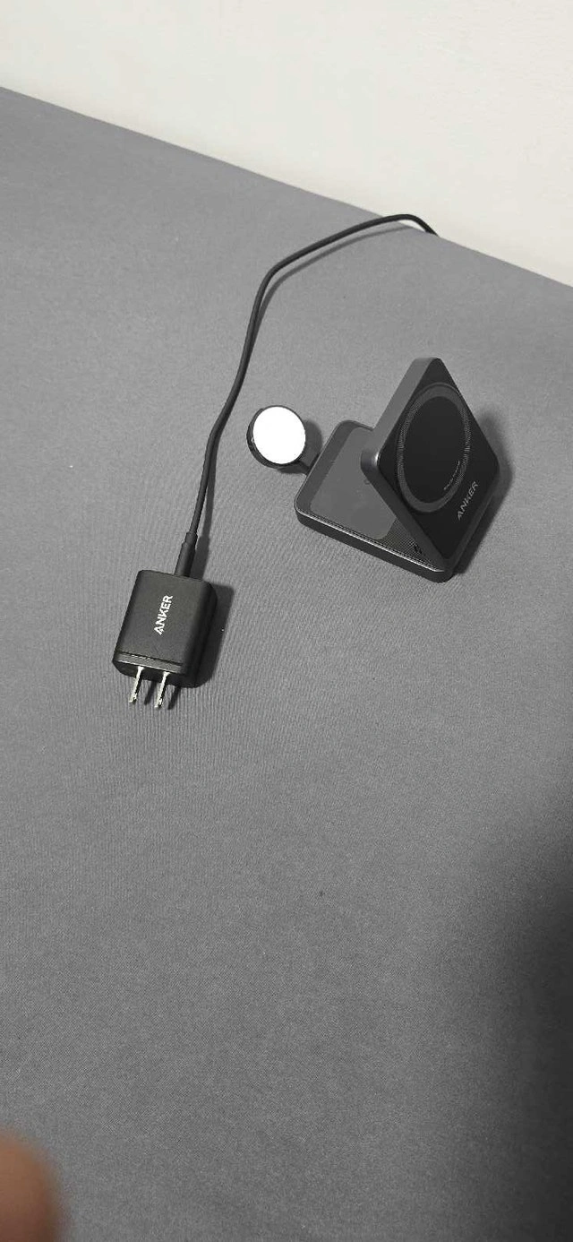 Selling an Anker Qi2 MagGo 3-in-1 15W Wireless Charging Station in excellent condition. This charging station allows you to charge your iPhone, Apple Watch, and AirPods simultaneously.