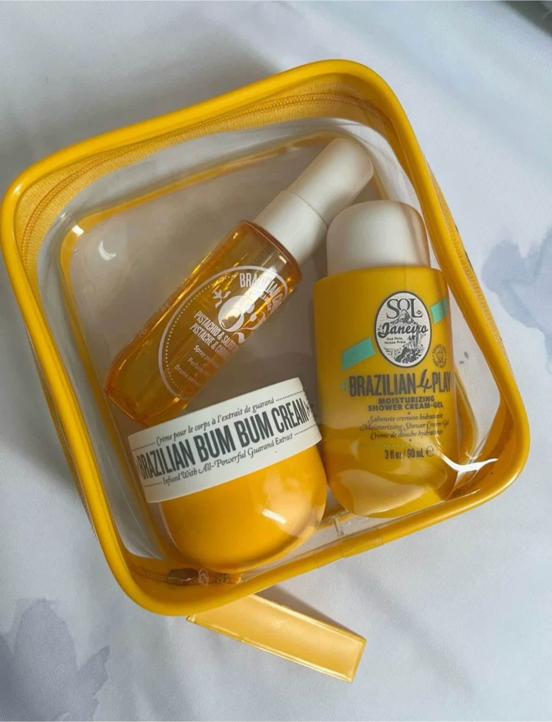 35Get ready for summer with this Sol de Janeiro travel set! It includes the iconic Brazilian Bum Bum Cream, Brazilian 4 Play Moisturizing Shower Cream-Gel, and Pistachio & Salted Caramel Perfume Mist. Perfect for trying out the brand or taking your favourite scents on the go