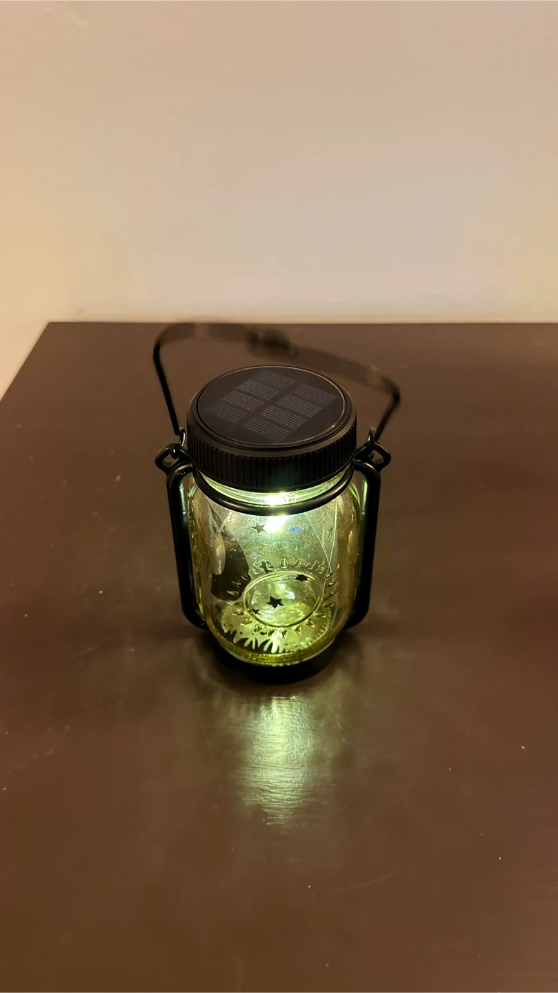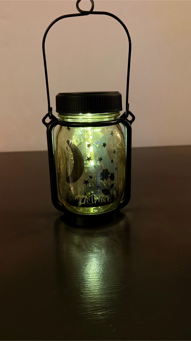 60This cute mason jar lantern is perfect for adding a touch of whimsy to your patio or garden! It features a solar panel on top, so it charges during the day and automatically lights up at night. The jar has a lovely design with a moon and stars, creating a cozy atmosphere