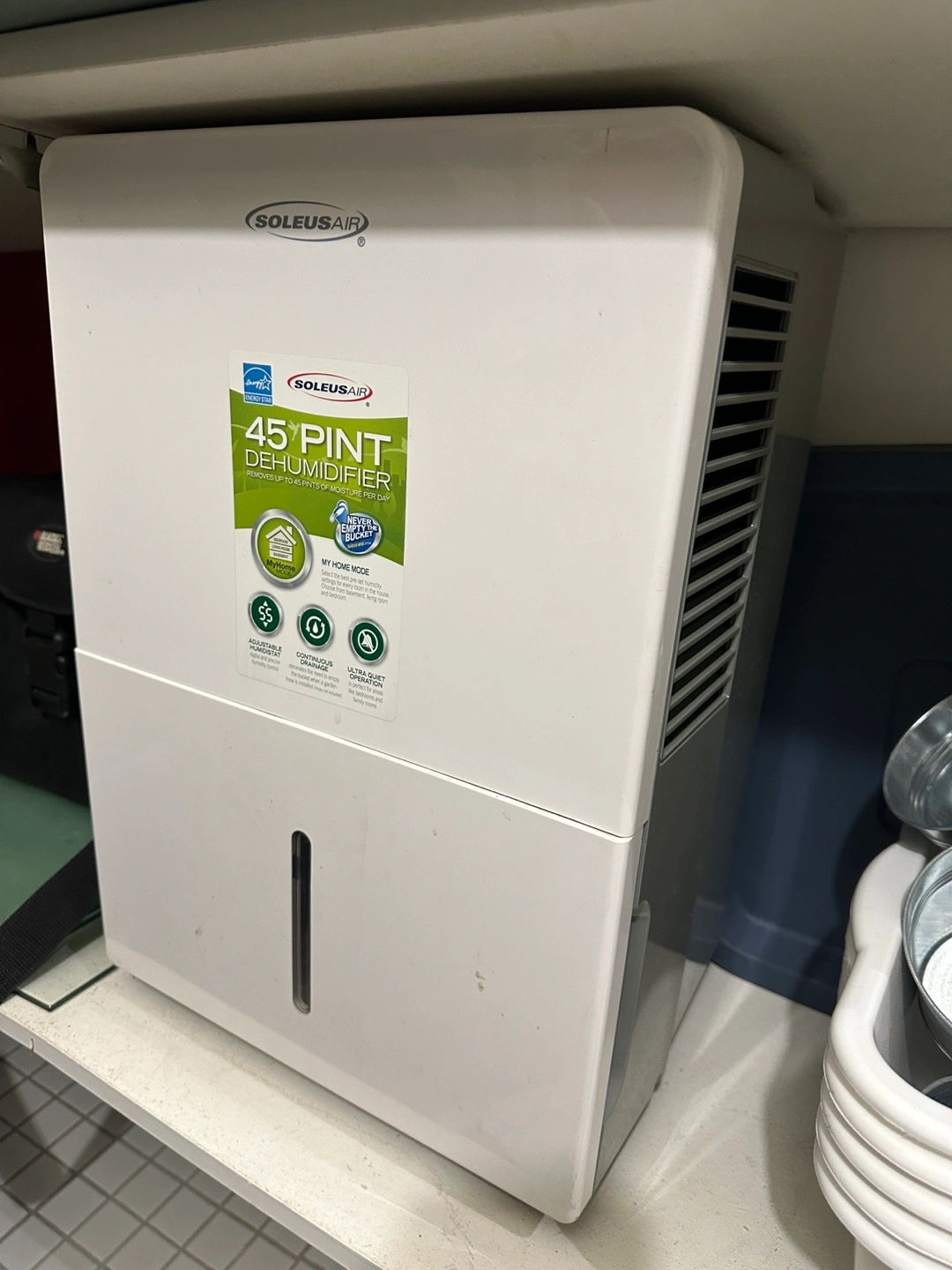 100Mississauga SOLEUSAIR 45 Pint Dehumidifier Washable, Energy Efficient Volume capacity 1.1 gal Pints of moisture removed per day 45 remove up to 45 pints of excess moisture every 24 hours from spaces up to approximately 2,500 square feet in size