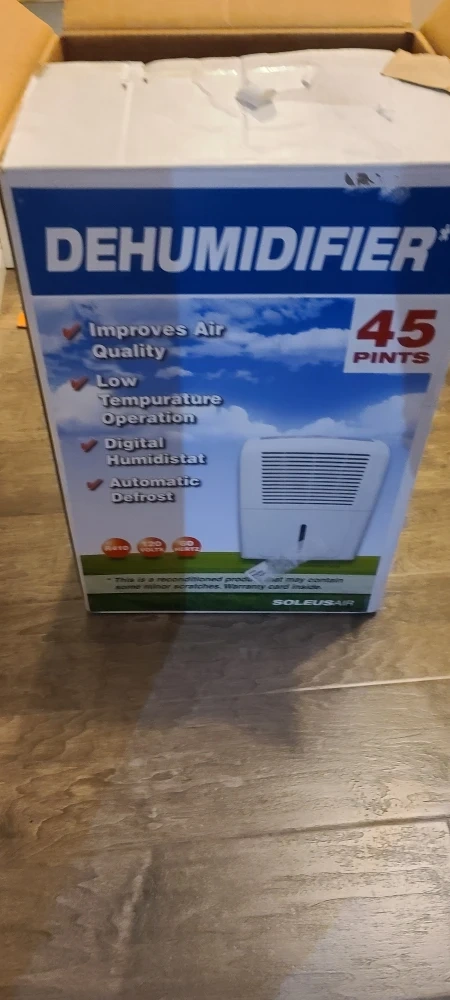 10Selling a SoleusAir dehumidifier. It improves air quality, has low temperature operation, a digital humidistat, and automatic defrost. It's a 45-pint model and comes with the original box