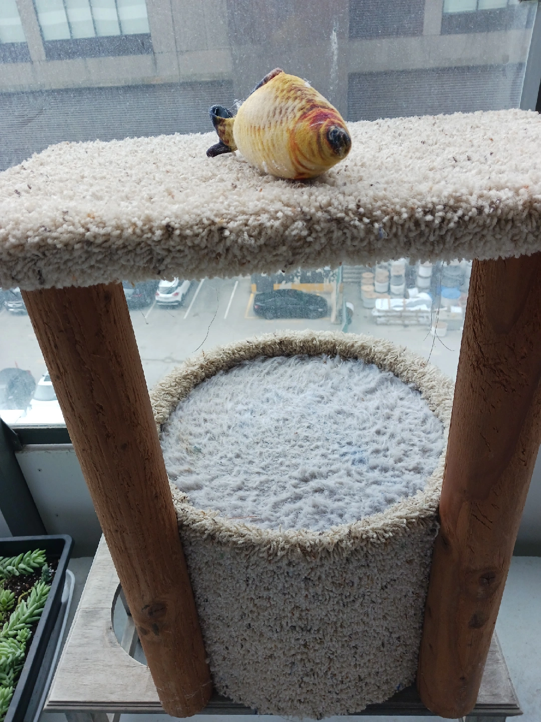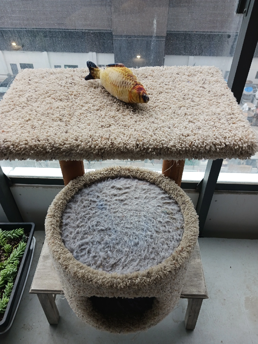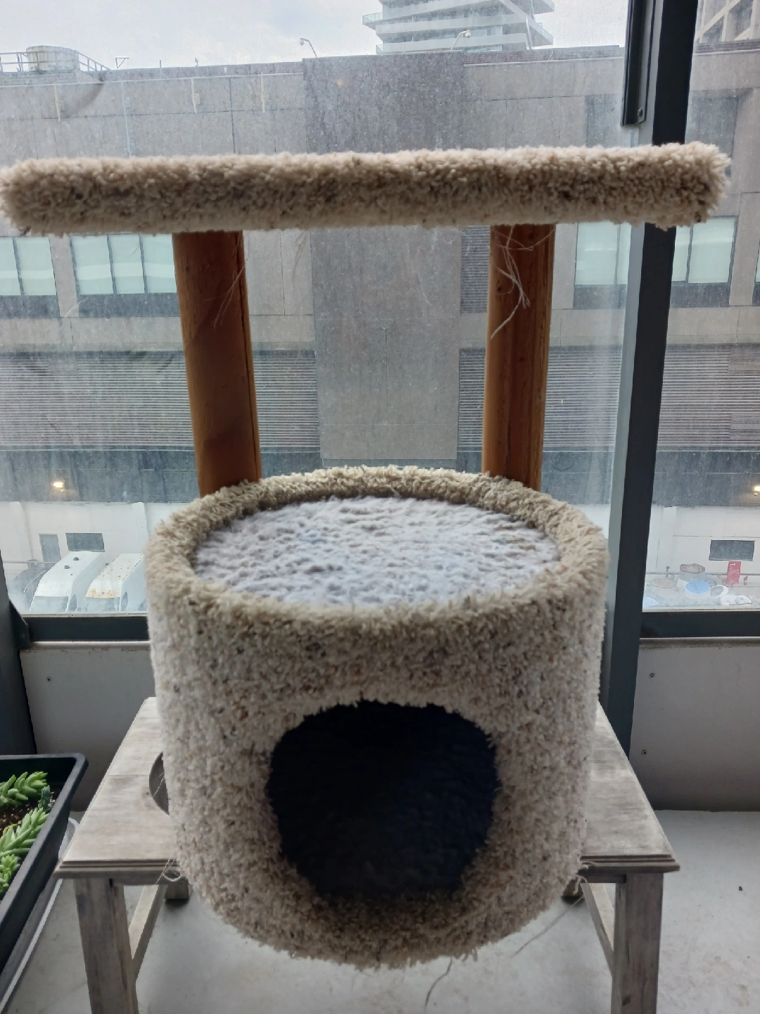 Selling a gently used cat tree! It's in great shape. It's a cozy spot for your cat to relax and observe their surroundings!