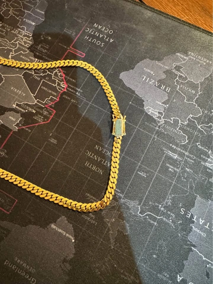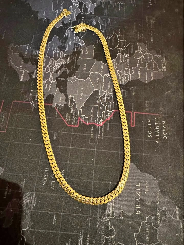 Solid Gold 14 KT 22” in length ~85g in weight (very heavy chain) Box Lock This chain was handcrafted by one of Miami’s top cuban link crafters. You will not find a more beautifully made chain here of this caliber, I promise you that. You can see for yourself by comparing this chain to any other chain on fb, karot, any market place. The craftsmanship is in how identical each link is and how tight they are. Here is the exact piece that I purchased: https://garciasjewelrymiami.com/products/14k-miami-cuban-link-chain-7mm?variant=40401825530031 Retail is now for $16,356 CAD (Listed as USD on their site). Keep in mind this price is also before canadian sales tax. I have all the paperwork and proof of purchase from Garcia Jewelry Miami. Available upon request.