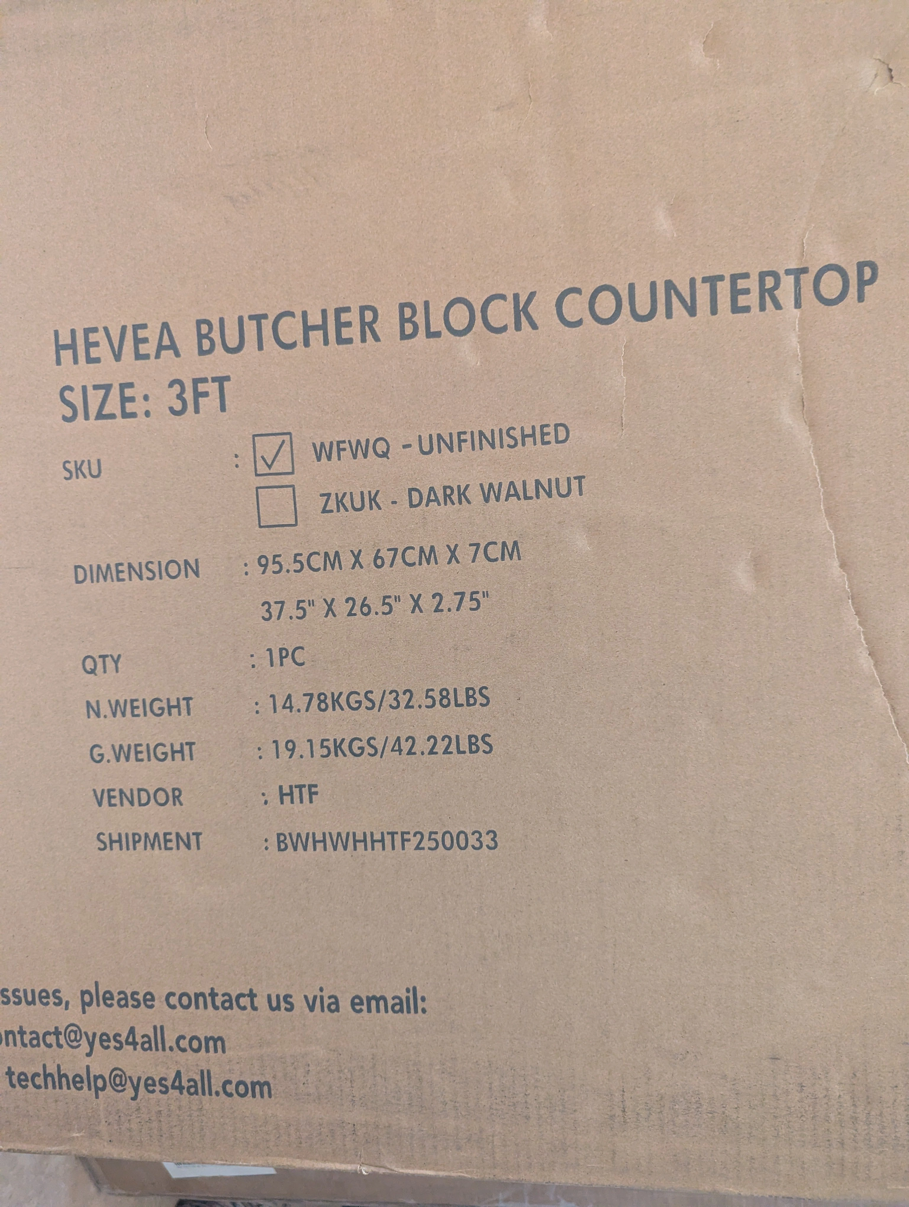 69Bartlum Sturdy Solid Hevea Wood Block Countertop for Workbenches 3x available, $150 each or all 3 for 400 Size: 36" H x 25" W x 1.5" D brand new in box (BNIB) never used $214+tax new https://www.wayfair.ca/storage-organization/pdp/ebern-designs-bartlum-sturdy-solid-hevea-wood-block-countertop-for-workbenches-c100456695.html?piid=366016315 Hevea wood’s smooth grain, heat, and moisture resistance make it ideal for kitchens and dining areas. Durable against dents and scratches, its light color brightens spaces, while its adaptability to various finishes suits diverse interior styles. Sturdy and Heavy Construction: Crafted from 100% solid hevea wood, this countertop is a testament to enduring strength, providing a reliable surface for your culinary endeavours. Perfect for DIY Lovers: Unleash your creativity with this ideal canvas for DIY projects, offering endless customization options. Smooth & Flawless Finish: Meticulously crafted to deliver a flawlessly smooth surface, enhancing the natural beauty of the solid wood. Versatile Usage: The countertop is the ideal thickness for various usages such as tabletop, washer-dryer countertops, butcher block desks, and workbench tops. Timeless Wood Beauty: Transform your home with the natural beauty of our solid wood countertop, featuring the charm of solid wood.