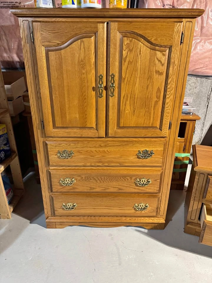 60Solid wood bedset Made in Canada Pick up in Bowmanville Smoke free home $1300 or best offer Includes: 1 tall dresser - 18” x W 39.5” x H 60 1/4” 1 long dresser with mirror - 18” x W 64 1/4” x H 32 1/4” / mirror H 43” 2 night tables - L 16” x W 25 1/4” x H 24.5” 1 headboard - 54” x 60” Feel free to message if you have any questions!