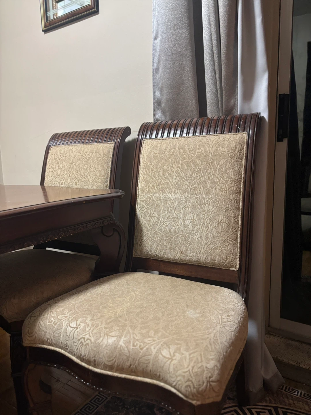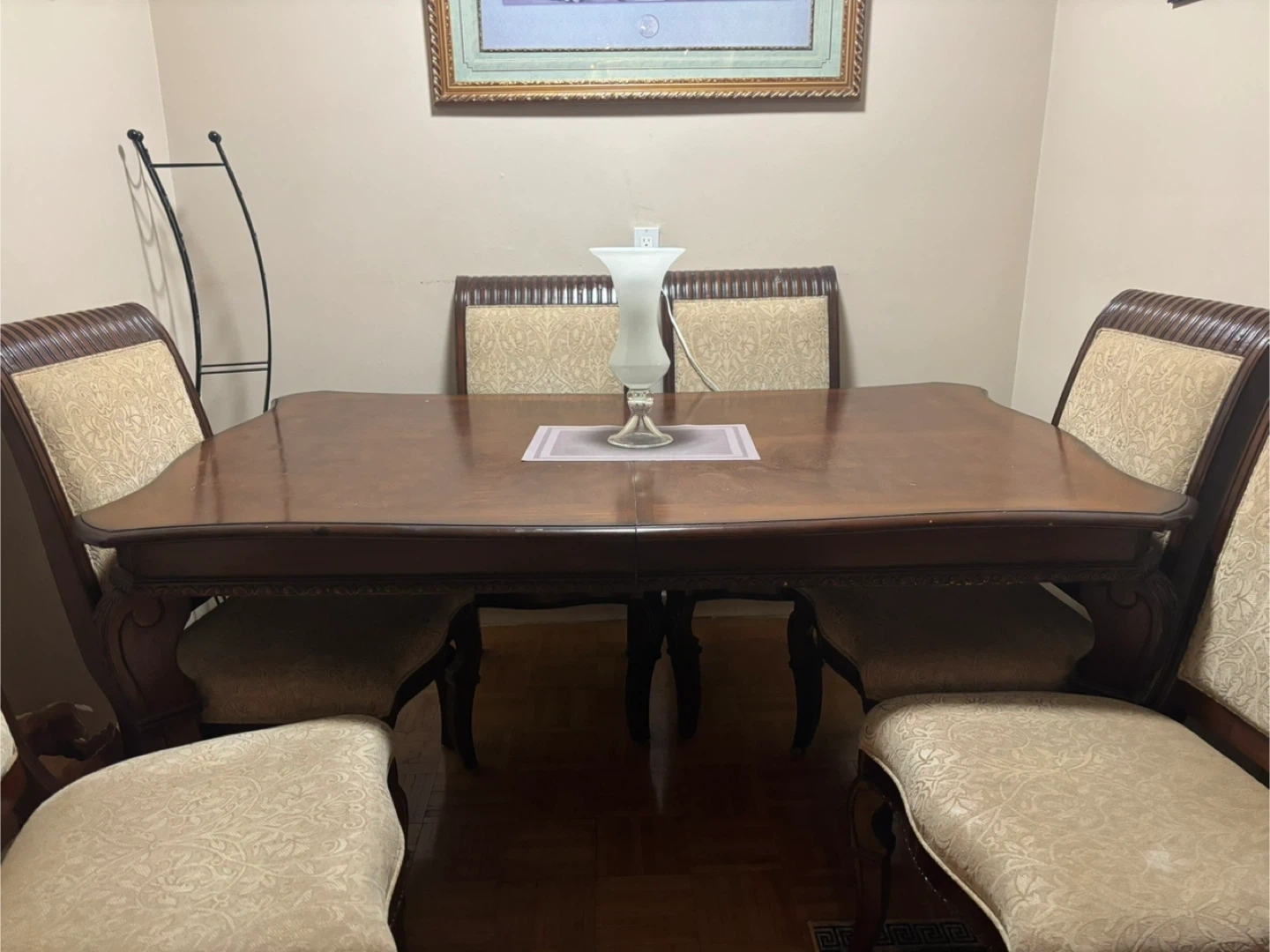 14Originally purchased for $4,000. Includes: 1 large solid wood dining table Extendable design - includes a middle leaf you can insert to comfortably seat more people 8 matching chairs (6 side chairs + 2 armchairs) Condition: Structurally strong and very heavy, made to last Some minor wear (reflected in the price) PICK UP ONLY