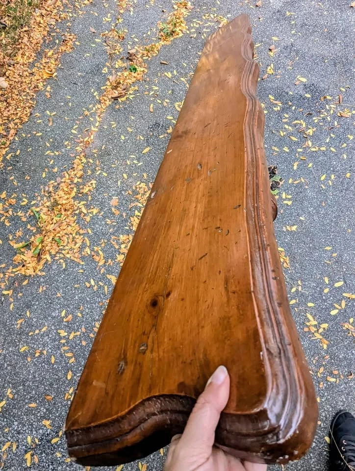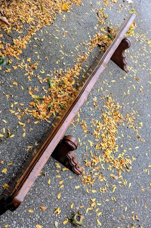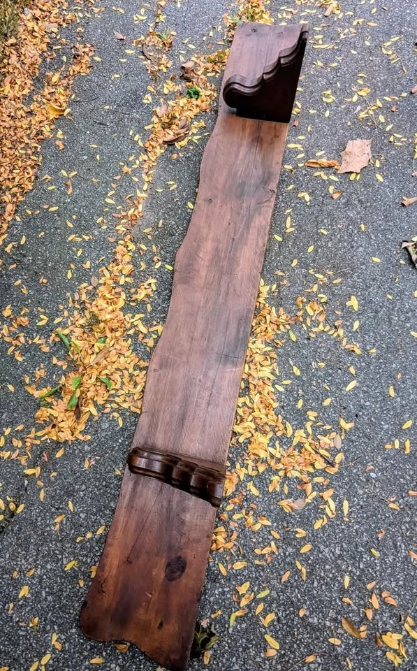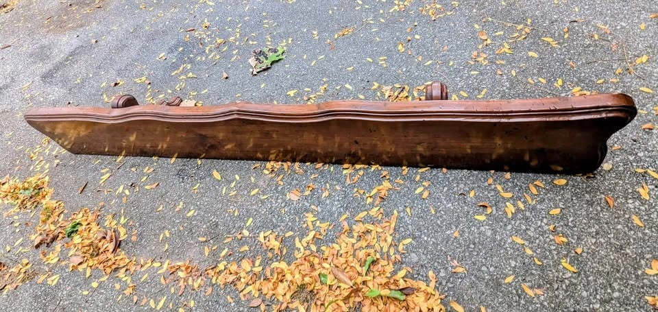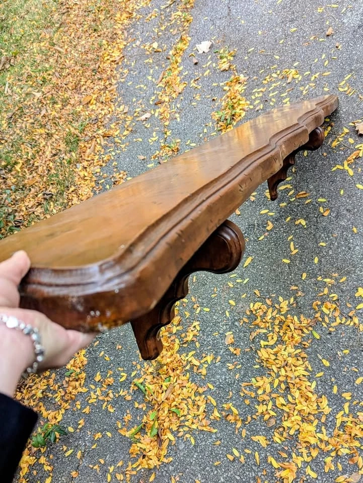 π$60 If PICKUP TODAY!β¨ Beautiful heavy solid wood shelf with carved decorative detail and warm walnut-brown finish Measures 65β long Γ 9β deep Γ 9β high perfect statement piece for an entryway, living room, kitchen, or above a fireplace. Sturdy and full of character, with a lovely aged patina and classic curved edge profile. Gently aged with small nicks and marks that add vintage charm. Solid and ready to hang.