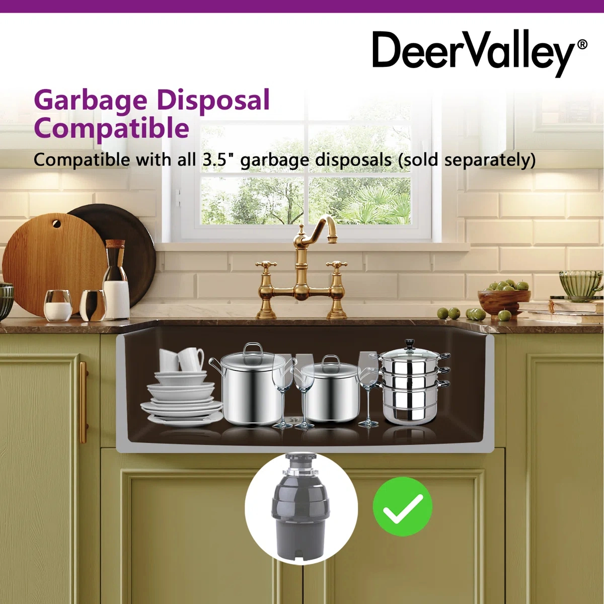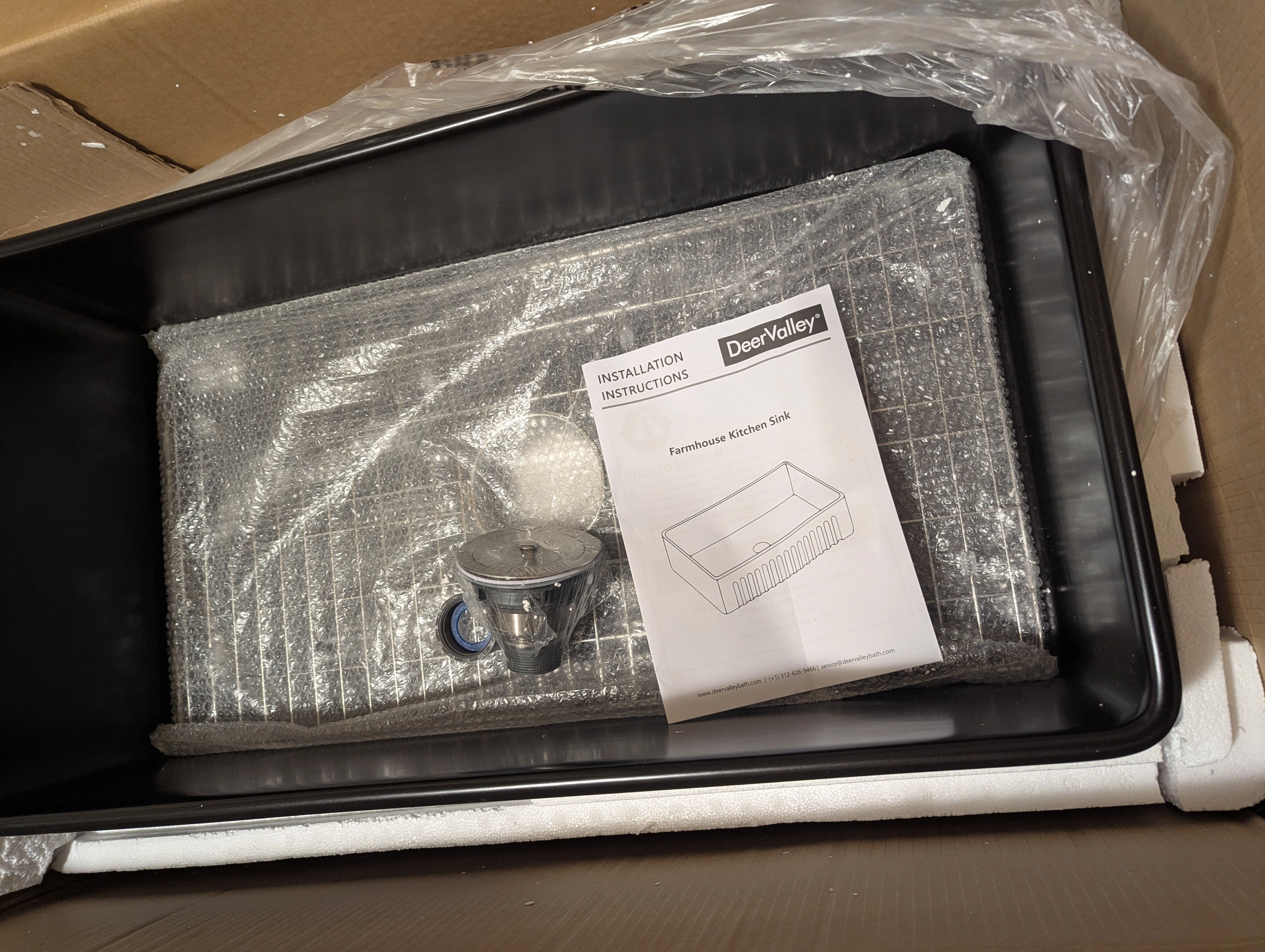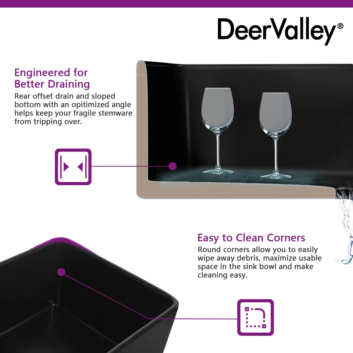 69Solstice 33" L x 18" W Fireclay Farmhouse Kitchen Sink with Sink Grid and Basket Strainer DV-1K0017 brand new in box (BNIB) never used Finish: Matte Black $750+tax new https://www.wayfair.ca/home-improvement/pdp/deervalley-solstice-33-l-x-18-w-fireclay-farmhouse-kitchen-sink-with-sink-grid-and-basket-strainer-drll1110.html?piid=81000769 This DeerValley fireclay farmhouse apron kitchen sink is made with high-temperature firing, which gives it a dense structure and a solid texture. The most significant advantage of the dense structure is its non-porosity, which protects the kitchen sink from the infiltration of water and air, thus making the interior of the farmhouse kitchen sink clean and hygienic and less prone to yellowing. Then the sturdy texture makes the apron kitchen sink resistant to scratches and impacts, ensuring the longevity of this kitchen sink. And this kitchen sink is also equipped with a compatible basket drainer and sink grid, which not only facilitates daily use but also better protects the kitchen sink. What's more, this kitchen sink can be installed on both sides, so you can choose any side to install according to your home decoration style. One side of it is simple and elegant, and the other side is exquisite and romantic, either side can present an excellent visual experience while being practical and beautiful! What's Included? Basin Rack/Bottom Grid Basket Strainer Features The single bowl sink is constructed from fireclay that is fired at 2900°F over 20 hours for extreme strength and durability. Reversible apron sink with a flat apron front can elevates your kitchen decor with modern style, you can choose a flat apron front or fluted apron front depend on your preference. This optimized bottom slope farmhouse sink keeps water easily washed down the drain, not easy to pool and block and prevents fragile glassware from toppling over. Round corners and glossy finish make it easy to clean. Solid farmhouse sink has non-porous, smooth, glossy surface, extremely resistance to chip, discoloration, scratching, cracking and heating. Will be durable non-discolouring and beautiful in several dozen years. Our sinks bowl are 8 7/8" interior deep, which can provide ample space to accommodate many items, even large kitchenware. Fireclay material makes the surface of this kitchen sink smooth and comfortable and also makes it quieter than a stainless steel sink.
