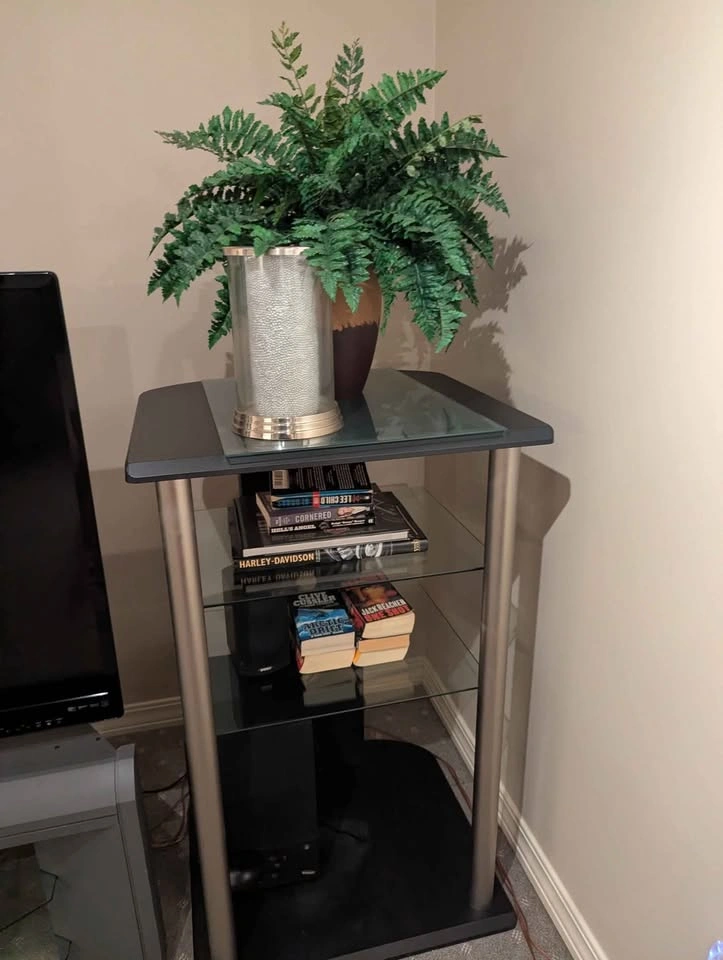 TV stands end stands coffee tables black couch book shelves silk