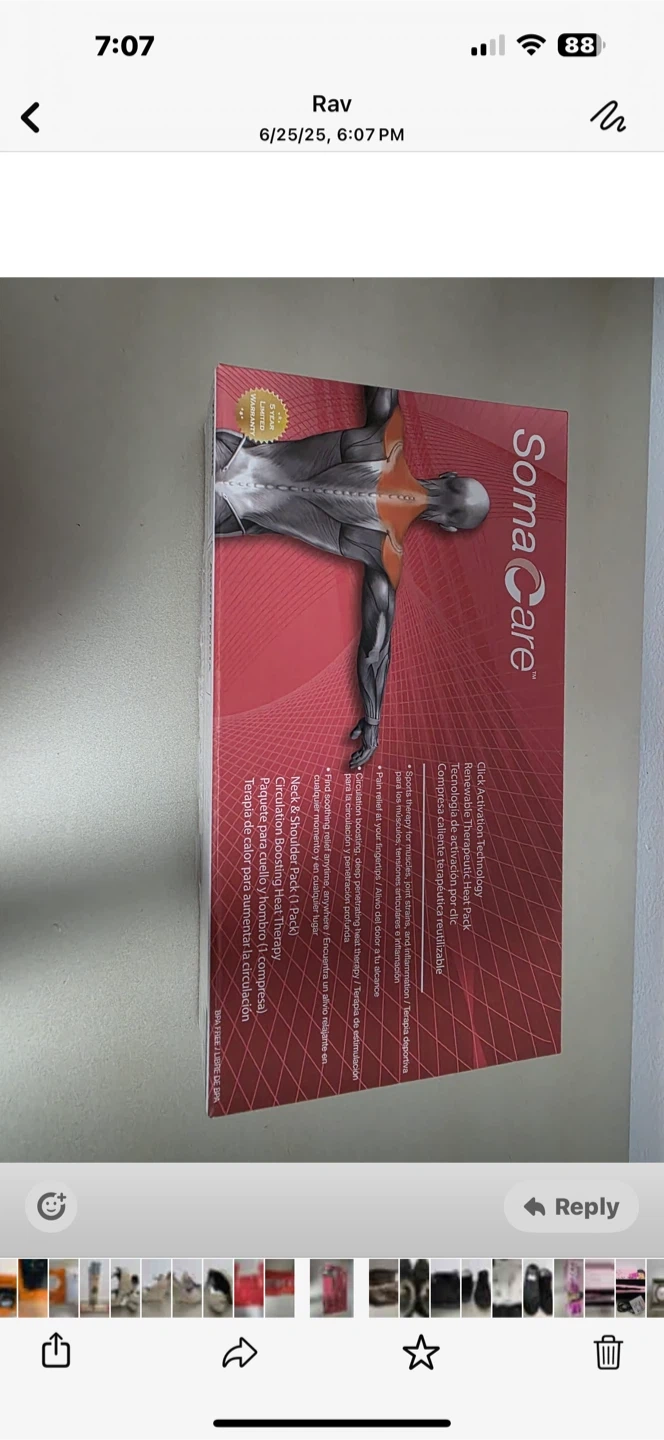76I'm selling a new Soma Care Neck & Shoulder Heat Therapy Pack! It's designed for pain relief and relaxation. The pack provides heat therapy for the neck and shoulder areas. The box is included