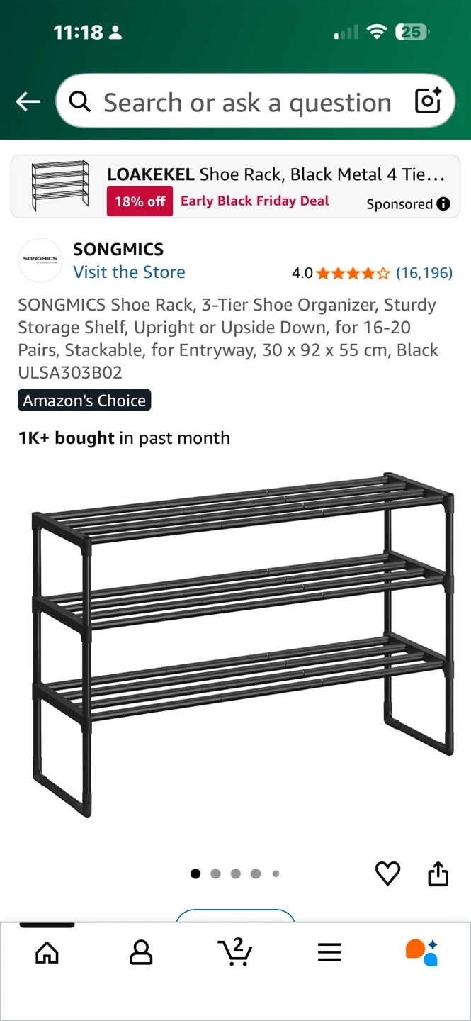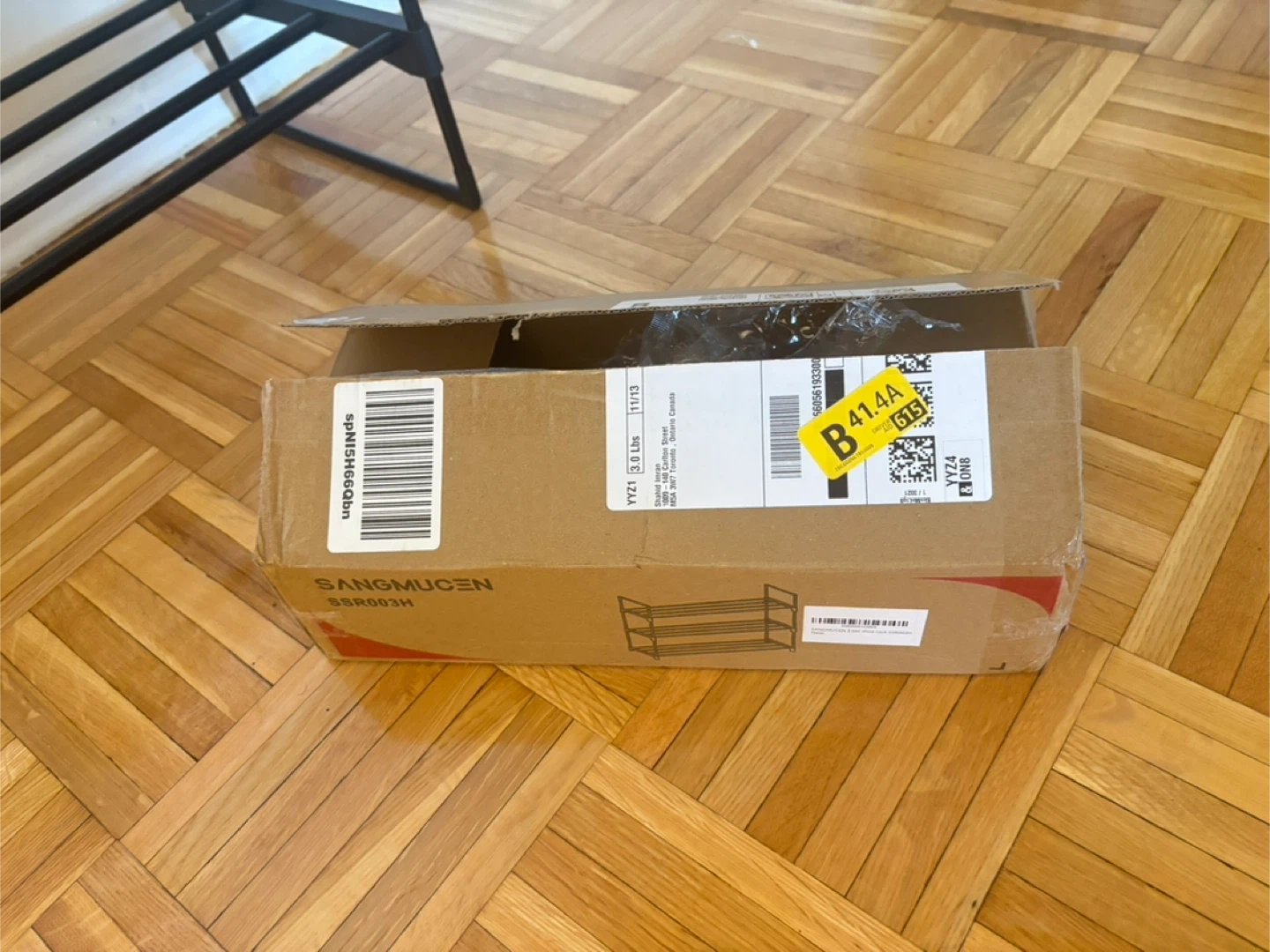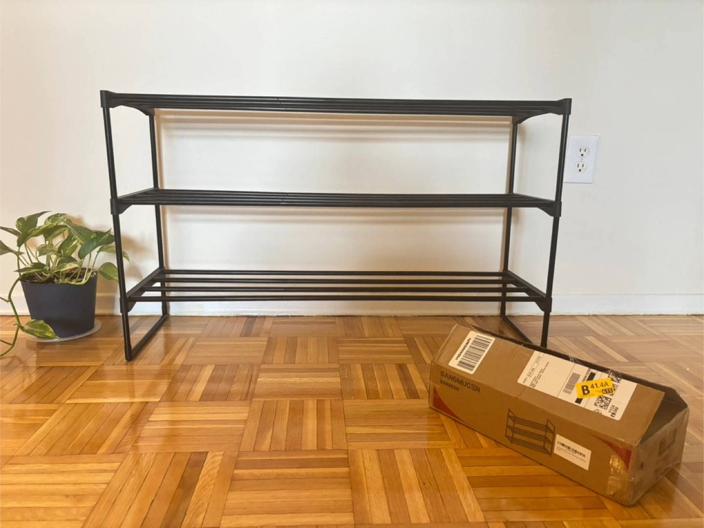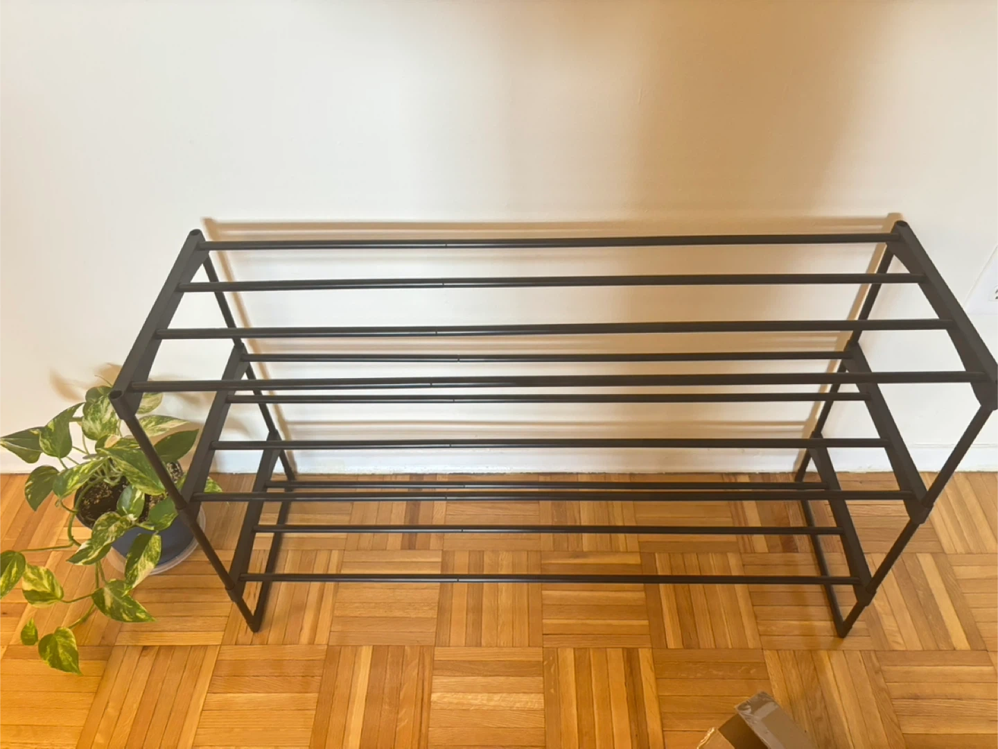 5Selling a SONGMICS 3-tier shoe rack! It's a sturdy storage shelf that can be used upright or upside down. It holds 16-20 pairs of shoes and measures 30 x 92 x 55 cm. The box is included! We just received on Thursday 13th Nov 2025. Selling purpose: Bigger than the available space