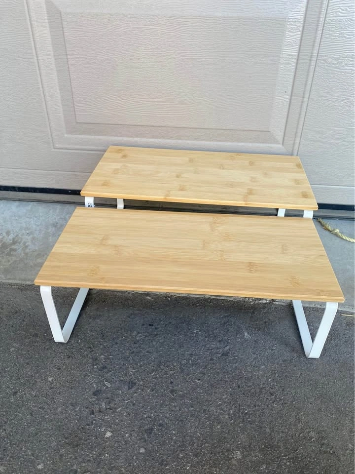 108📍Pick up: Brock Road & Rex Heath Drive, Pickering. No holds, please. ✨ Maximize your counter or cabinet space with this stylish 2-piece organizer shelf set. 🧂 Use as spice racks, pantry shelves, or kitchen storage. 📏 Stack them, expand them, or use side by side—your choice! 🖤 Ink black metal + natural beige wood for a sleek, modern touch.