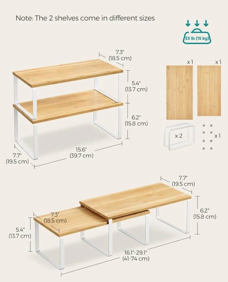SONGMICS Cabinet Organizer Shelf - Set of 2