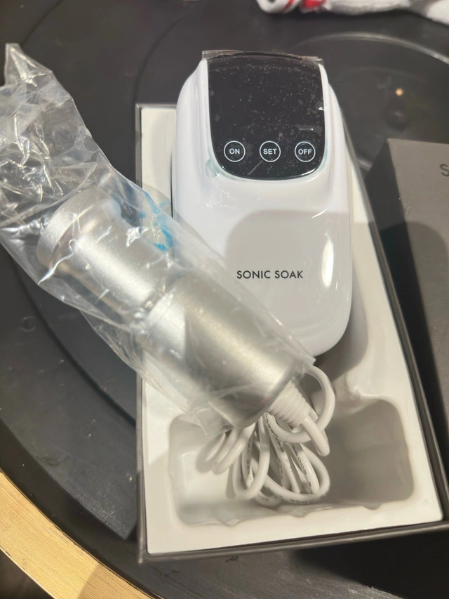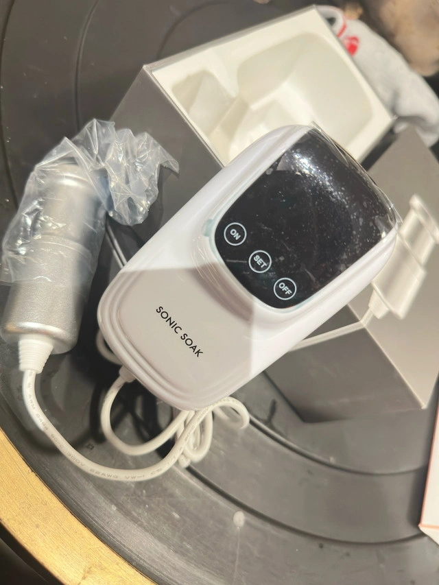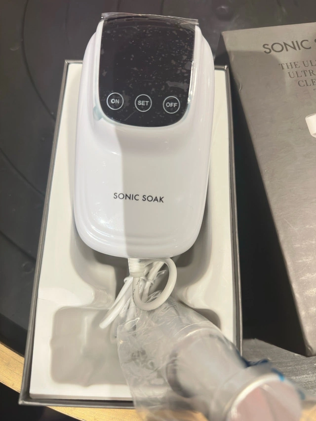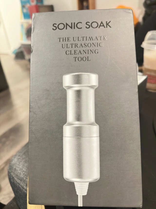 10The Sonic Soak is the ultimate ultrasonic cleaning tool for your everyday essentials. This particular unit is nearly new, used only a couple of times. It utilizes ultrasonic cleaning technology to sanitize items gently yet effectively. Included is the original box. * Ultrasonic cleaning * Compact design * Easy to use * Perfect for travel It's like having a tiny spa day for your belongings! And hey, if the ad's up, it means it's still available, so no need to ask!