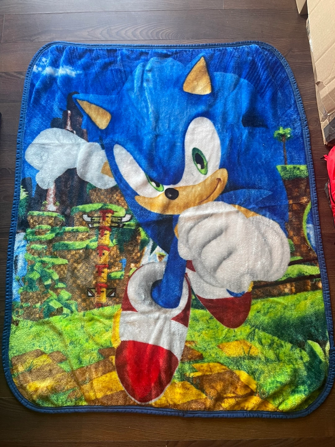 Snuggle up with this awesome Sonic the Hedgehog throw blanket! It features a vibrant design of Sonic in action, perfect for any fan of the speedy blue hedgehog. It's in great condition and ready to bring some fun to your home!