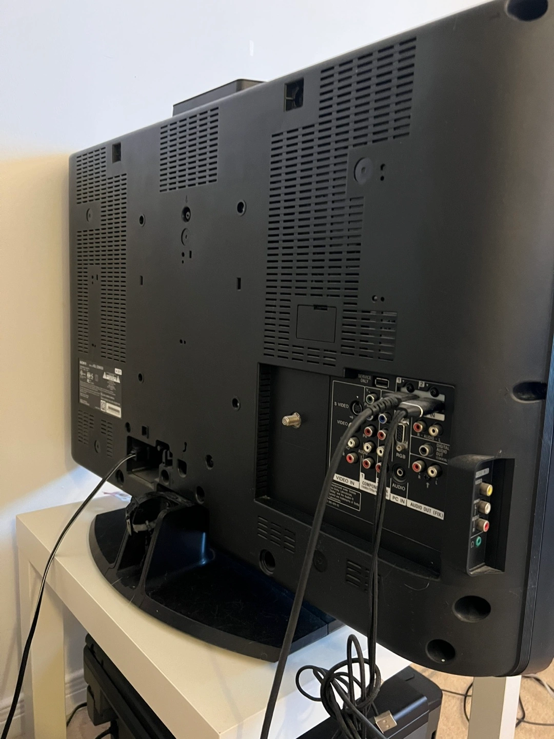 124Flat screen television. Includes remote. Various connection ports. Great for a bedroom or smaller space.