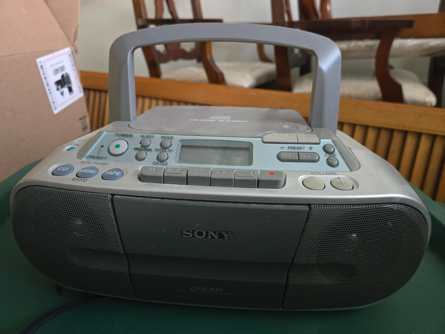 10Selling a Sony CFD-S01 CD/Radio/Tape player. It's in good working condition and ready for a new home. Perfect for playing your old CDs and tapes!