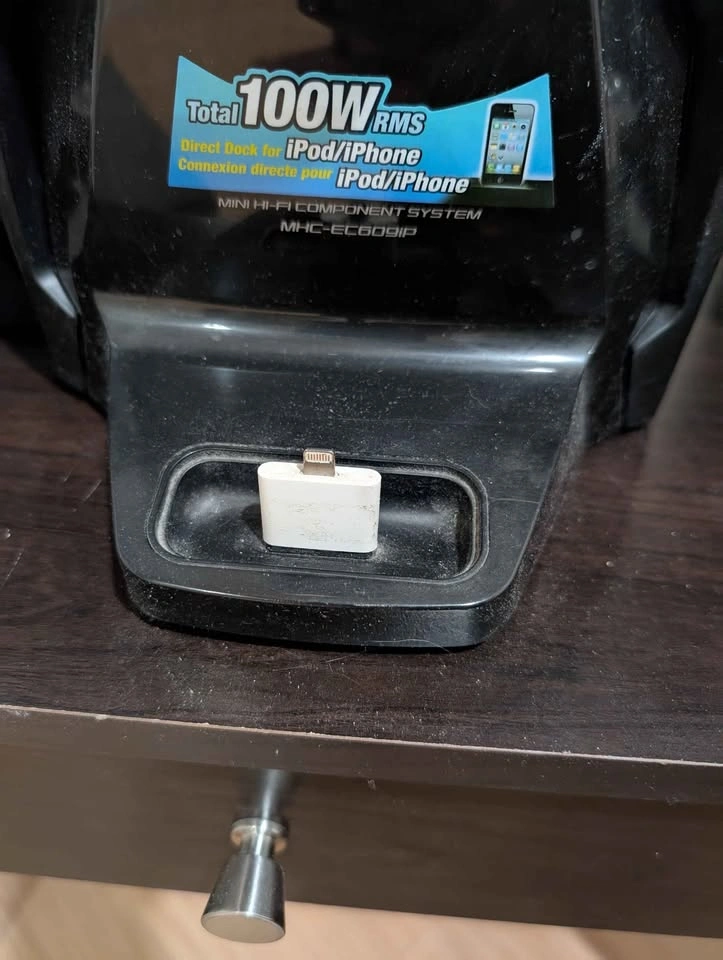 62The Sony MHC-EC609iP Mini Hi-Fi System is a compact audio system that plays music from CDs, AM/FM radio, and a built-in dock for compatible iPods and iPhones (comes with lightning adaptor only). It also comes with a remote control.