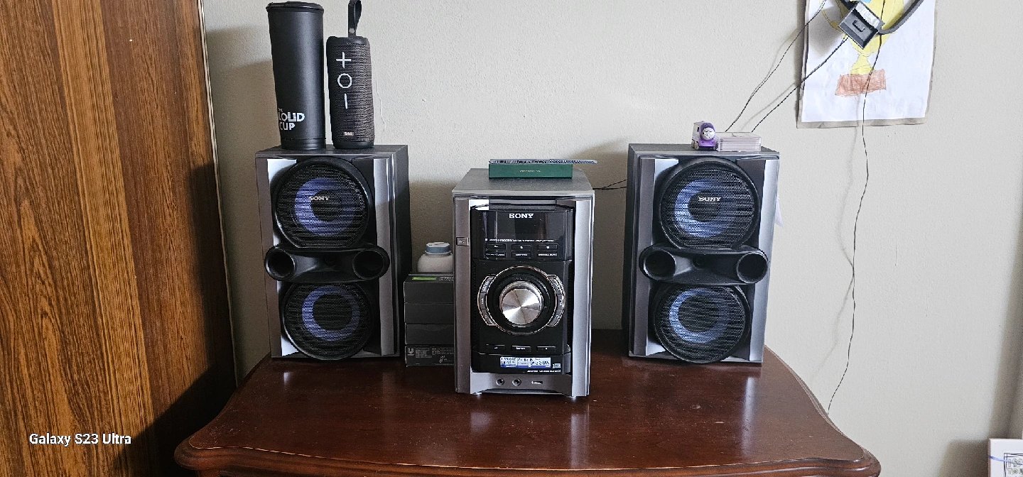 Selling a Sony Mini Hi-Fi Component System MHC-EC70P. It features a CD player, MP3 CD-R/RW playback, and a dock for iPod. The system has a total output of 380W and includes tuning and function controls.