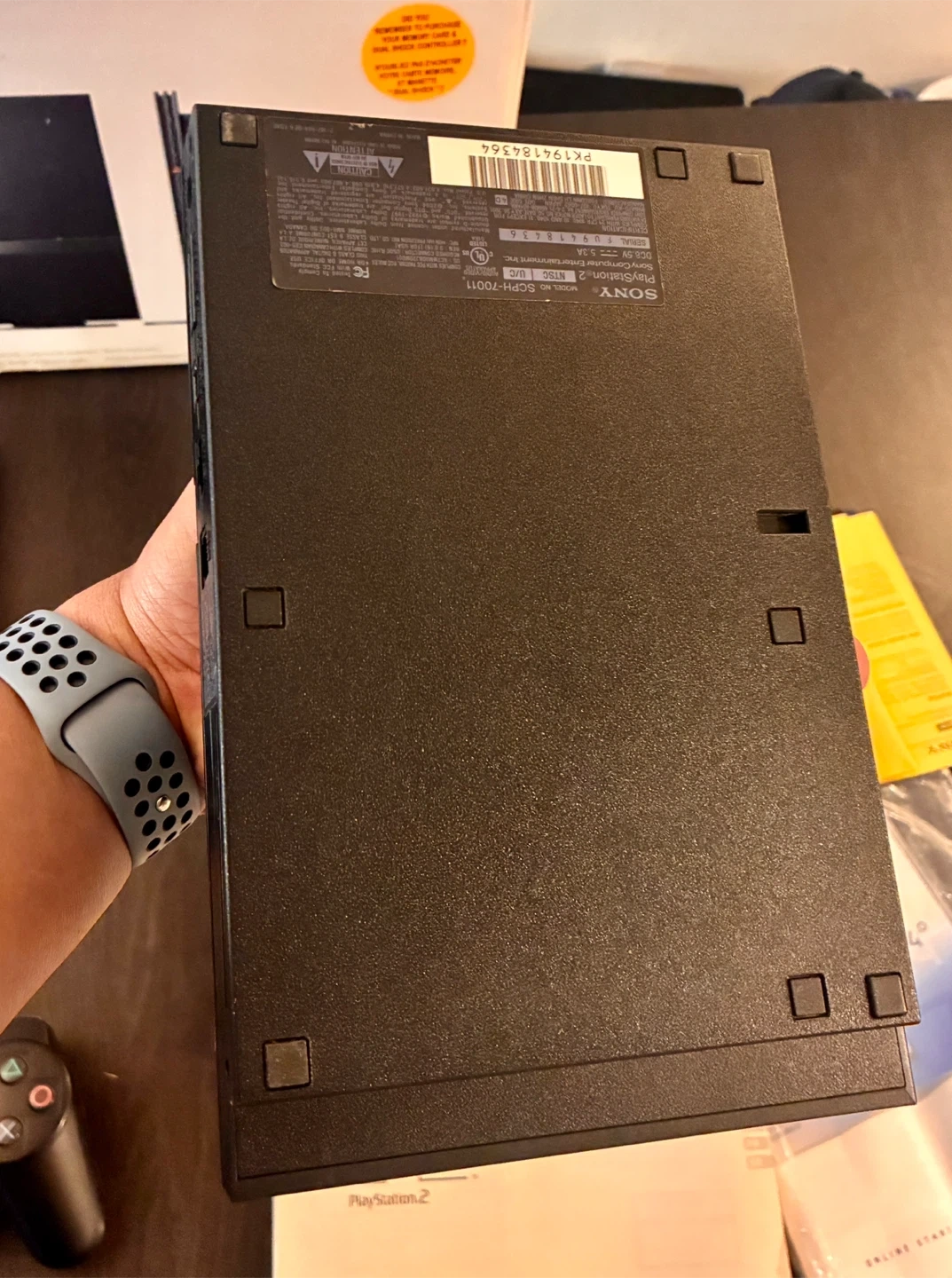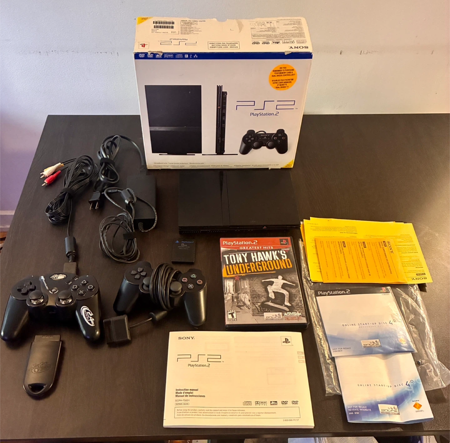 116Selling a classic Sony PlayStation 2! It comes with the original box and all the components you see in the pictures. You'll get two controllers (one Mad Catz), Tony Hawk's Underground game, memory card, and all the necessary cables to get you gaming right away! A blast from the past ready for a new home