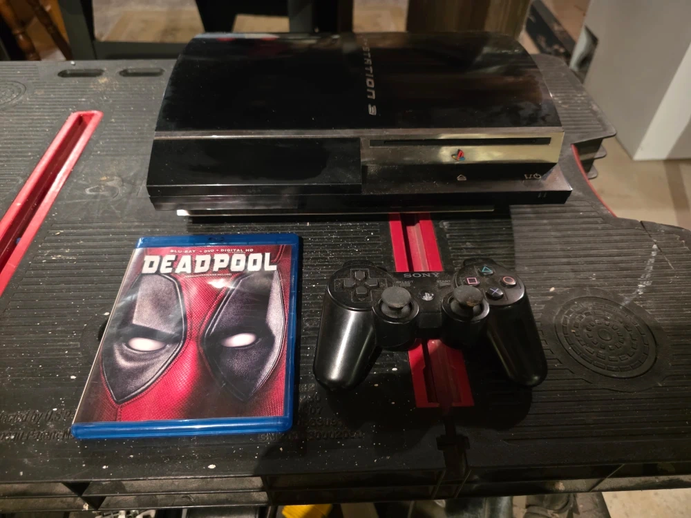 Selling a used Sony PlayStation 3 (PS3) console. It comes with a controller. Perfect for playing your favourite games! Plus im adding the deadpool movie in as well. The only thing is that i cant seem to find the power cord. Ill buy one as soon as some one shows real intrest in it.
