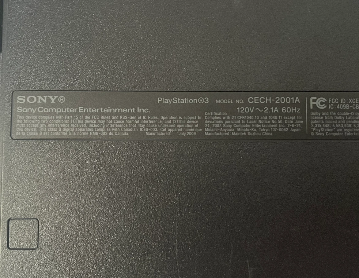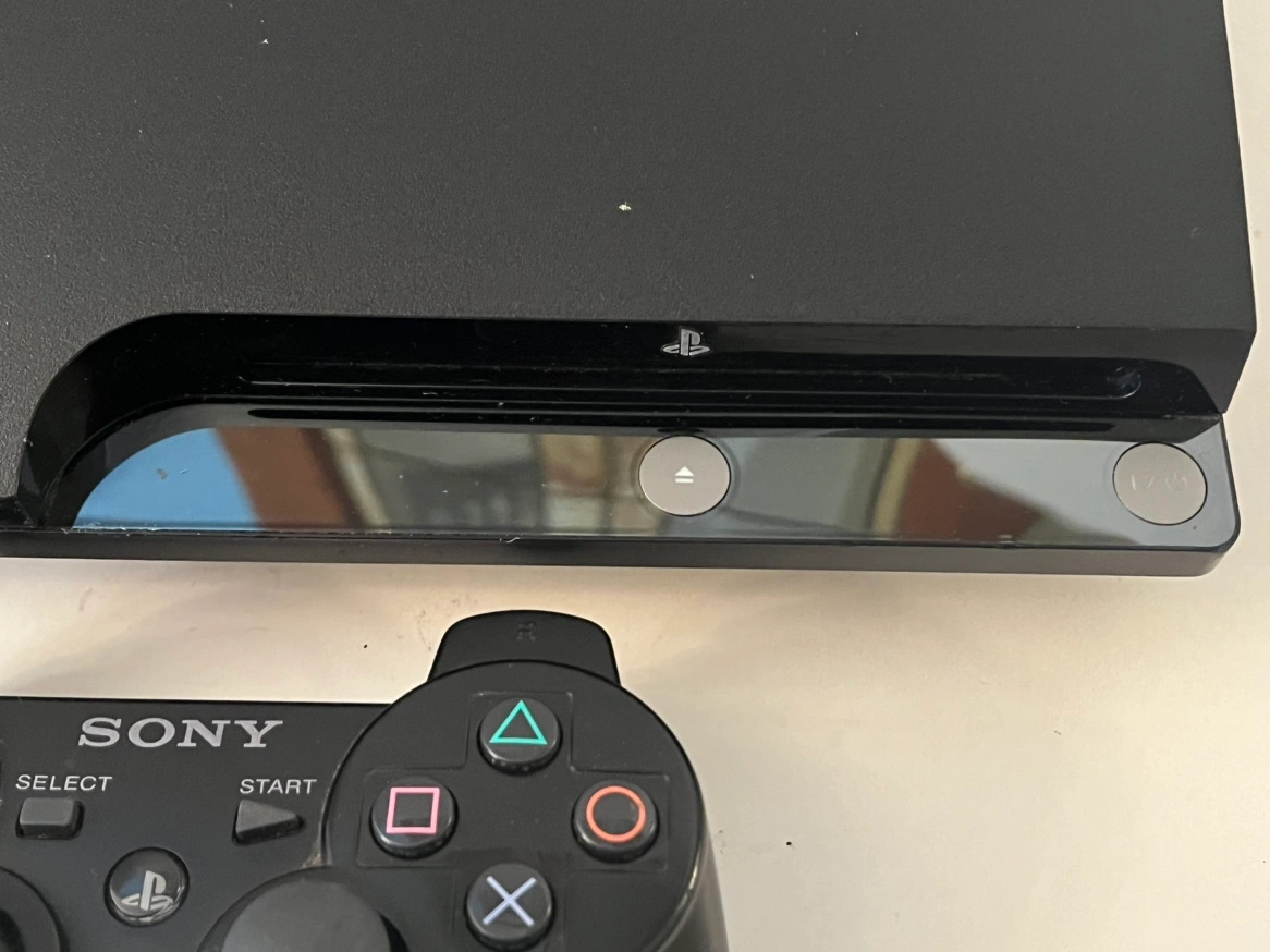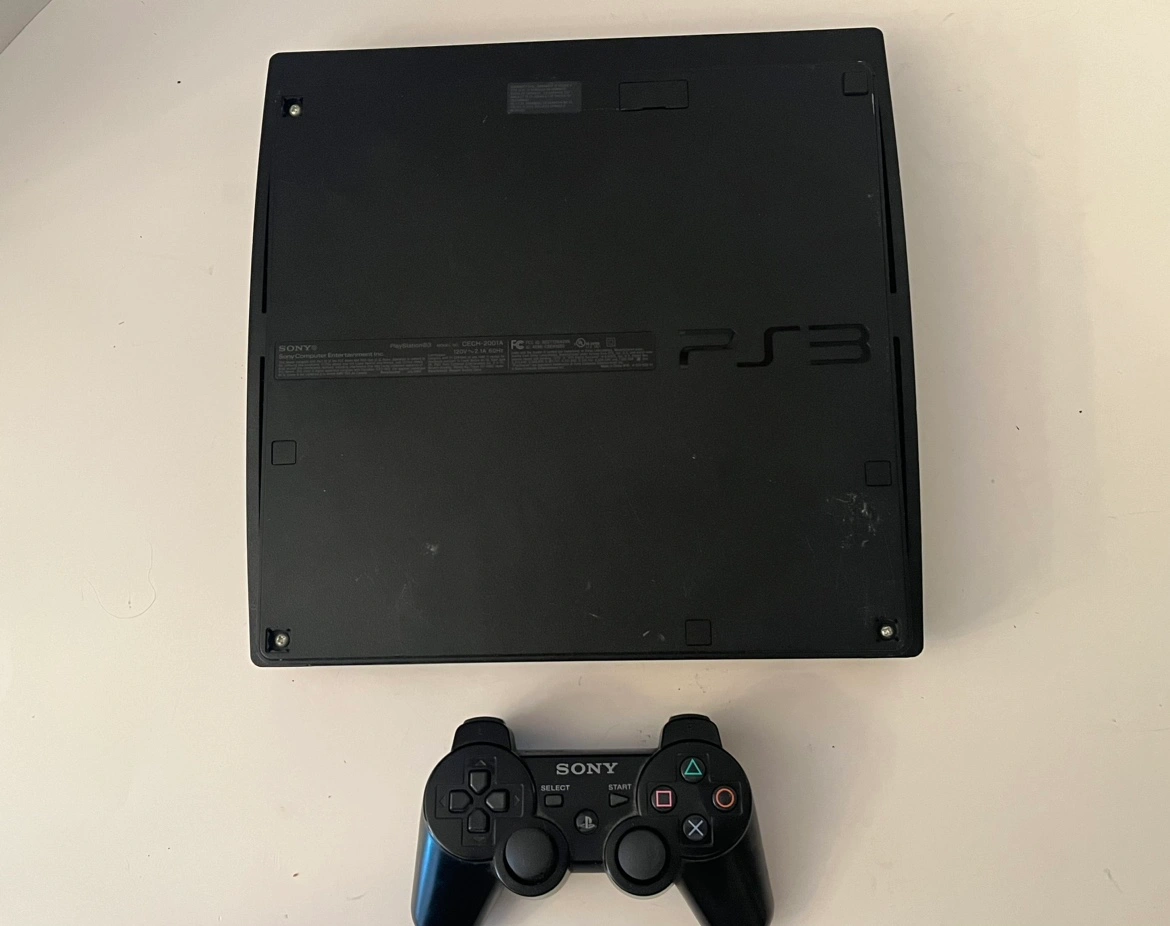 Sony PlayStation 3 Slim (PS3 Model CECH-2001A) with Controller Description: - Model: Sony PlayStation 3 Slim (Model 2001) - Condition: Fully functional - Storage: 120GB - Included: PS3 Slim console, Sixaxis controller, USB cable for controller, power cable, HDMI cable - Features: HDMI output, Blu-ray player, Wi-Fi connectivity, large library of games available - Drive: Working - Ports: USB ports for charging and connecting peripherals - Network: Ethernet port for wired internet connection - Audio/Video: Composite and component video output, optical audio output Price: $135 Keywords: PS3 Slim, Sony PlayStation 3, Sixaxis controller, gaming console, Blu-ray player, HDMI output, Wi-Fi connectivity, USB ports, built-in hard drive, video games.