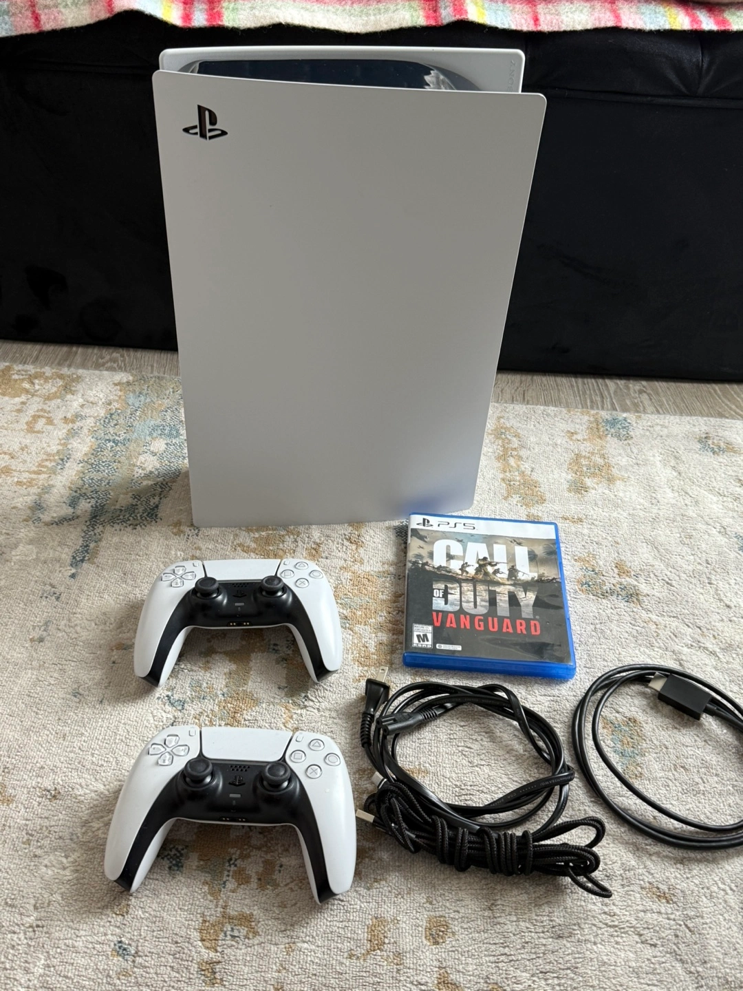 Sony PlayStation 5 Digital Edition Console 2 Controller One Game. Model CFI-1015A Very good condition 10/10 With Console, 2 Controllers, Game, Cords. Not have Box. Location pick up Islington