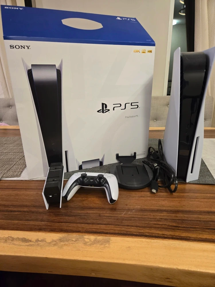 60Selling a PlayStation 5! It comes with the console, one controller, and all the necessary cables. The original box is included as well, making it easy to transport. Perfect for anyone looking to upgrade their gaming setup! Comes with a separate charger.