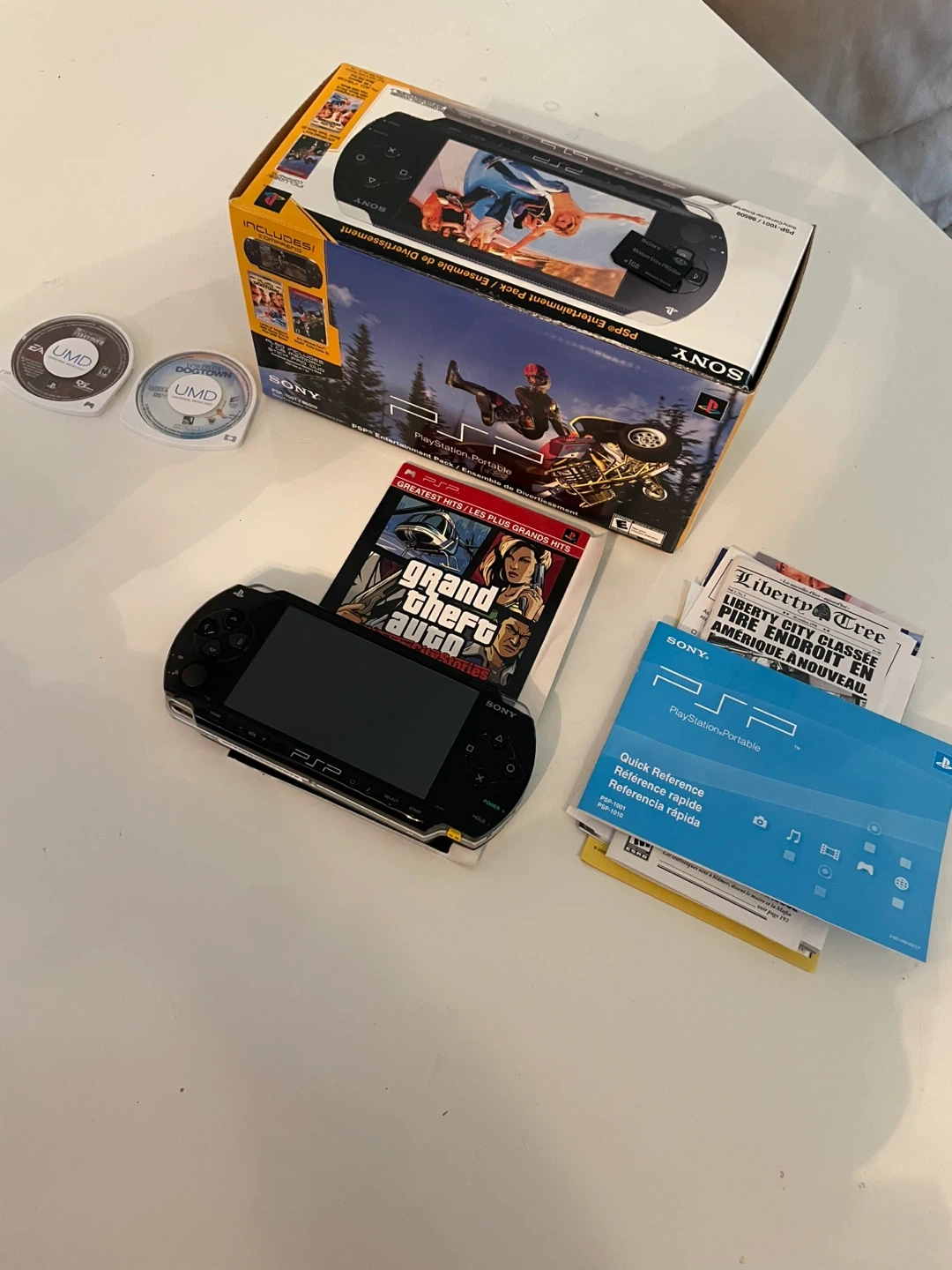 10Selling a Sony PSP (PlayStation Portable) Value Pack! It comes with the original box, two UMD games, Grand Theft Auto Liberty City Stories, and the original documentation. A great retro gaming find!