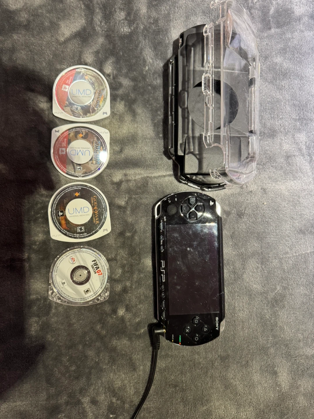 Selling a used Sony PSP 1001. It comes with a protective case and several games on UMD. Great for some retro gaming on the go!