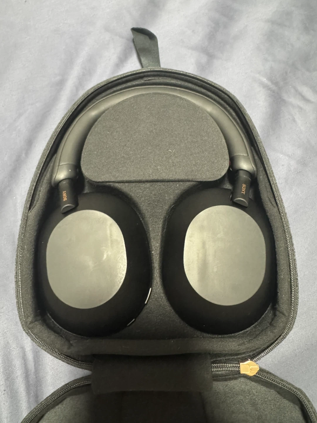 Selling a pair of Sony WH-1000XM5 wireless noise-cancelling headphones. They come with their original case for easy storage and protection.