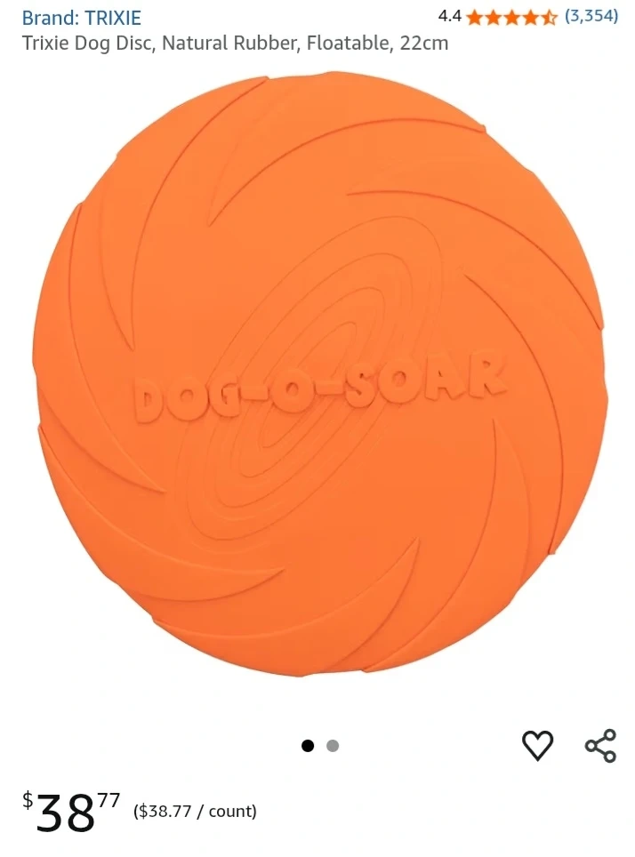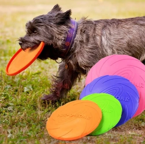 This dog disc is made from natural rubber and floats. Suitable for all breed sizes. Great for outdoor fetch play