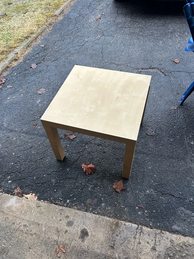 Used IKEA Lack table, perfect as a side table or for small spaces. It's sturdy and simple, great for any room. There are some signs of wear, but overall it's in good condition. Dimensions: 55x55 cm, Height: 45 cm. If the ad is up, it's available!
