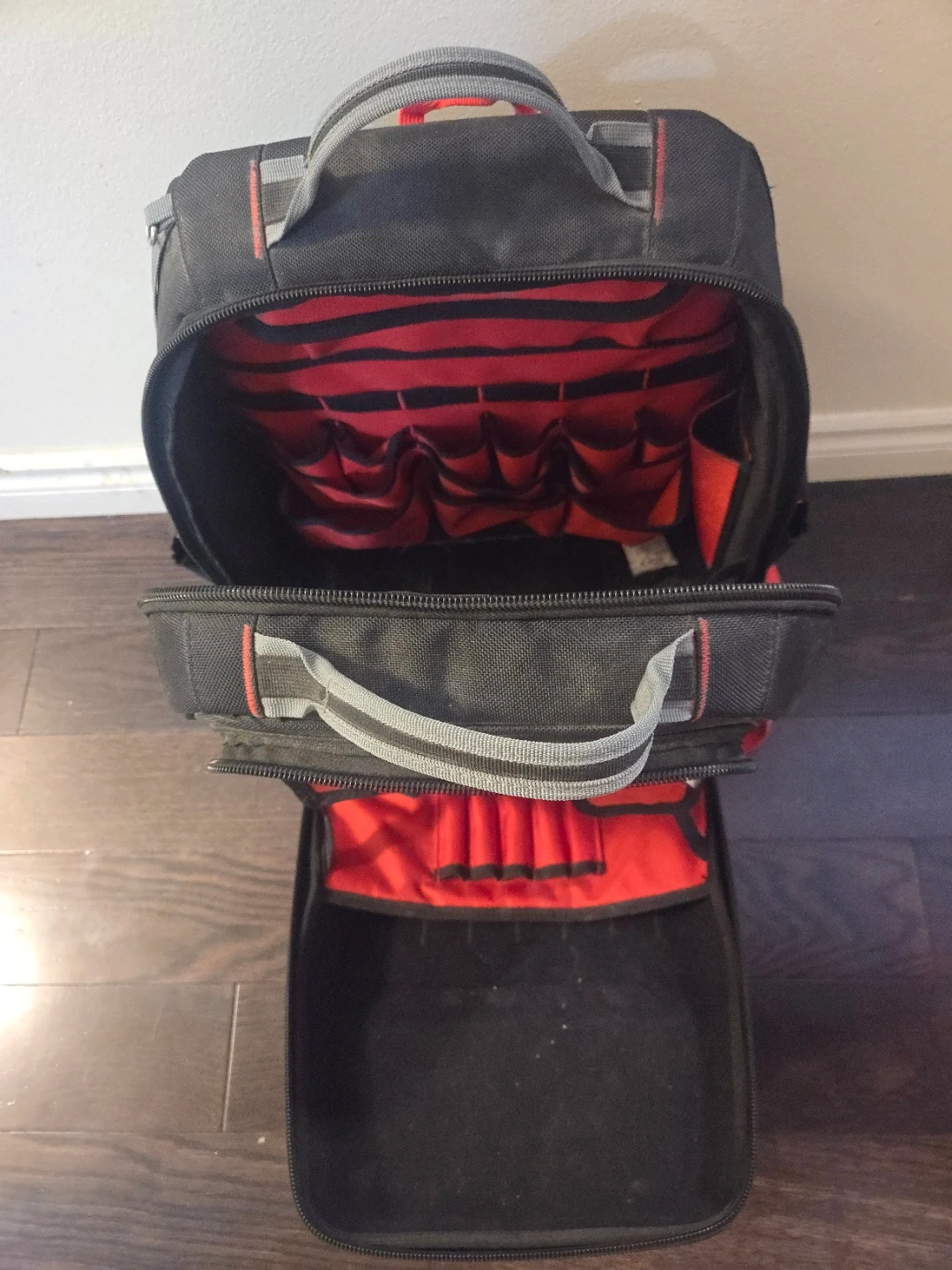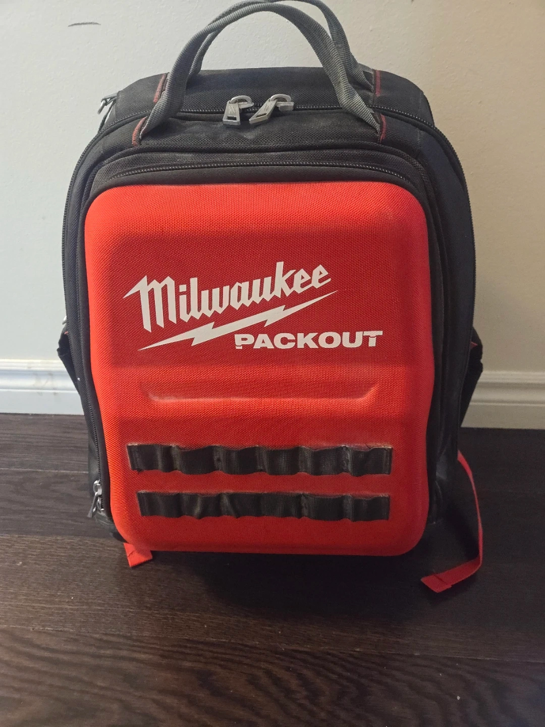 This Milwaukee PACKOUT tool backpack is designed for durability and organization. It features multiple pockets and compartments for storing various tools and accessories. The robust construction ensures it can handle tough jobsite conditions.
