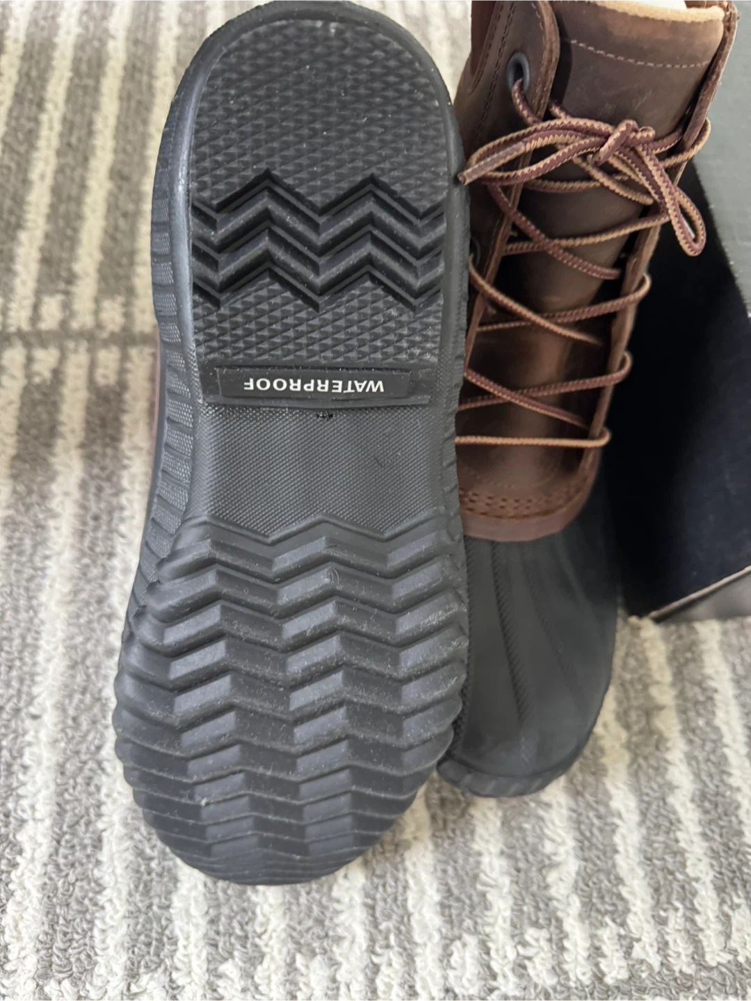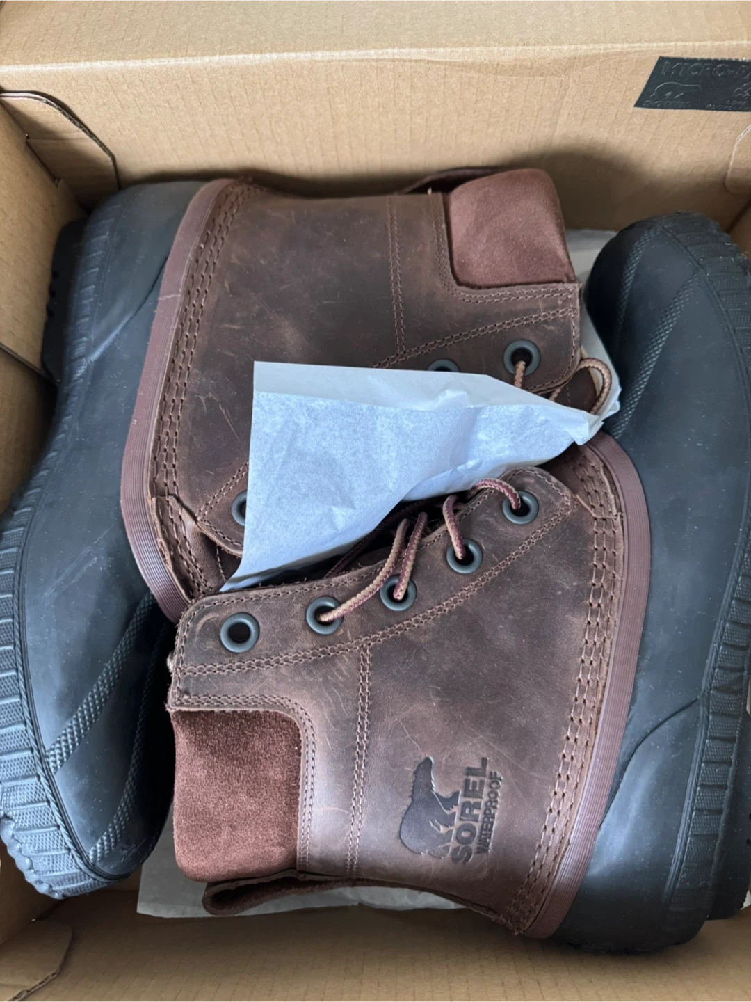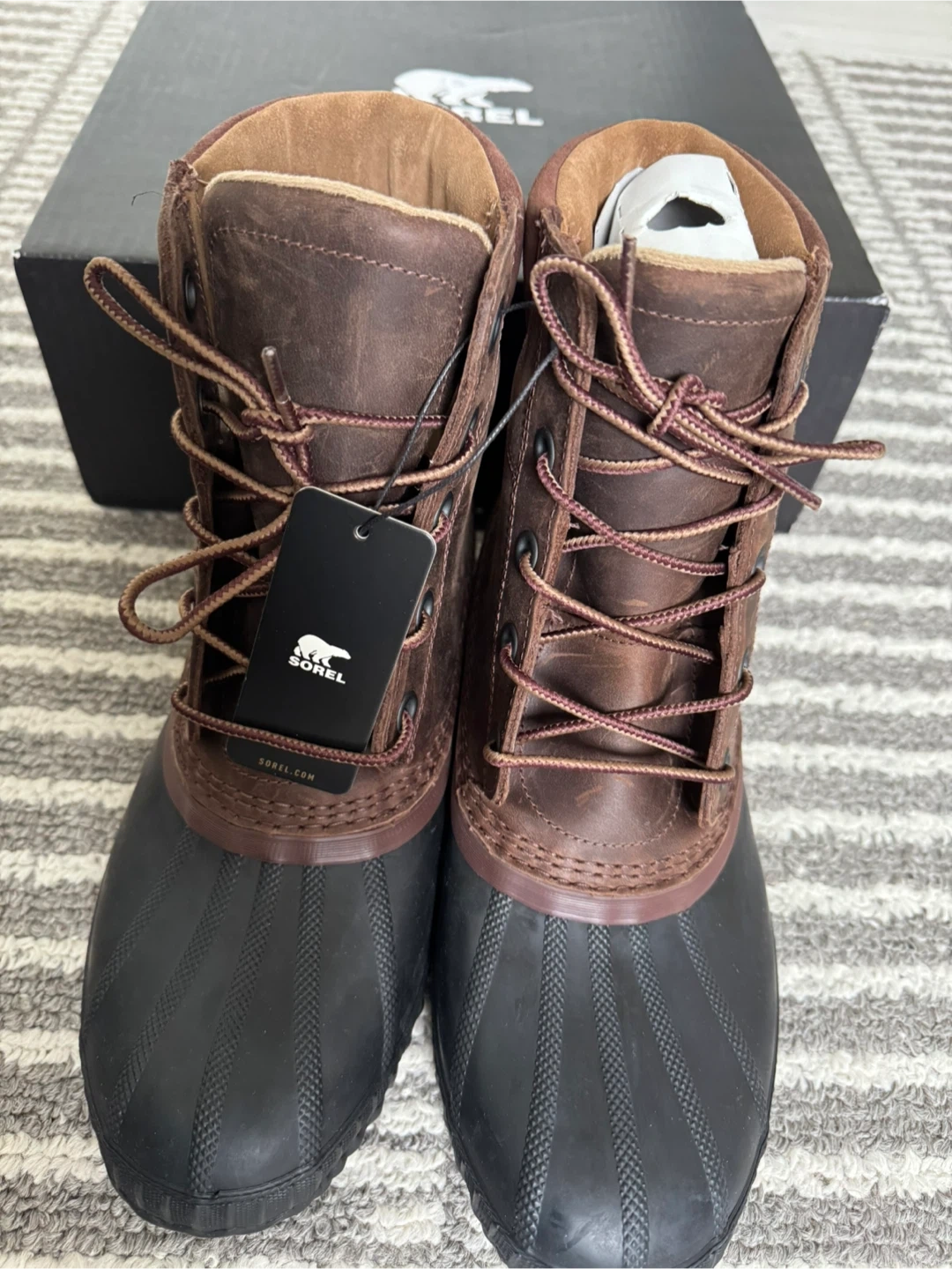 15Selling a pair of Sorel Cheyanne II boots in tobacco and black, men's size 9! These boots are waterproof and have a temperature rating of -25°C to -32°C. They come with the original box