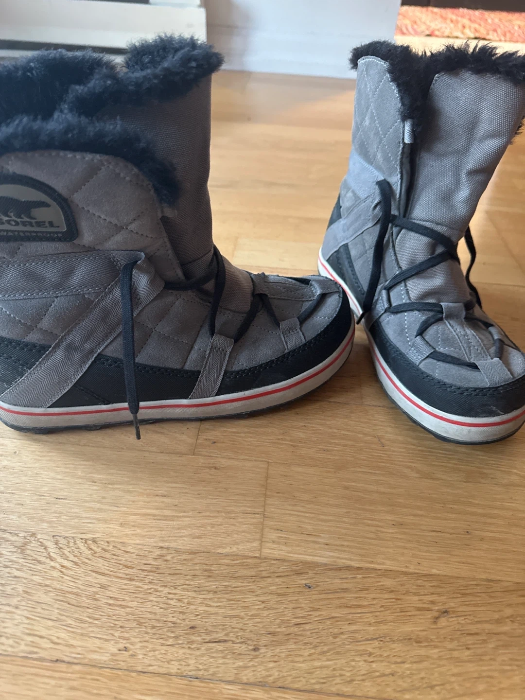 34Selling a pair of Sorel winter boots in gray. They're in great condition and ready to keep your feet warm this winter!