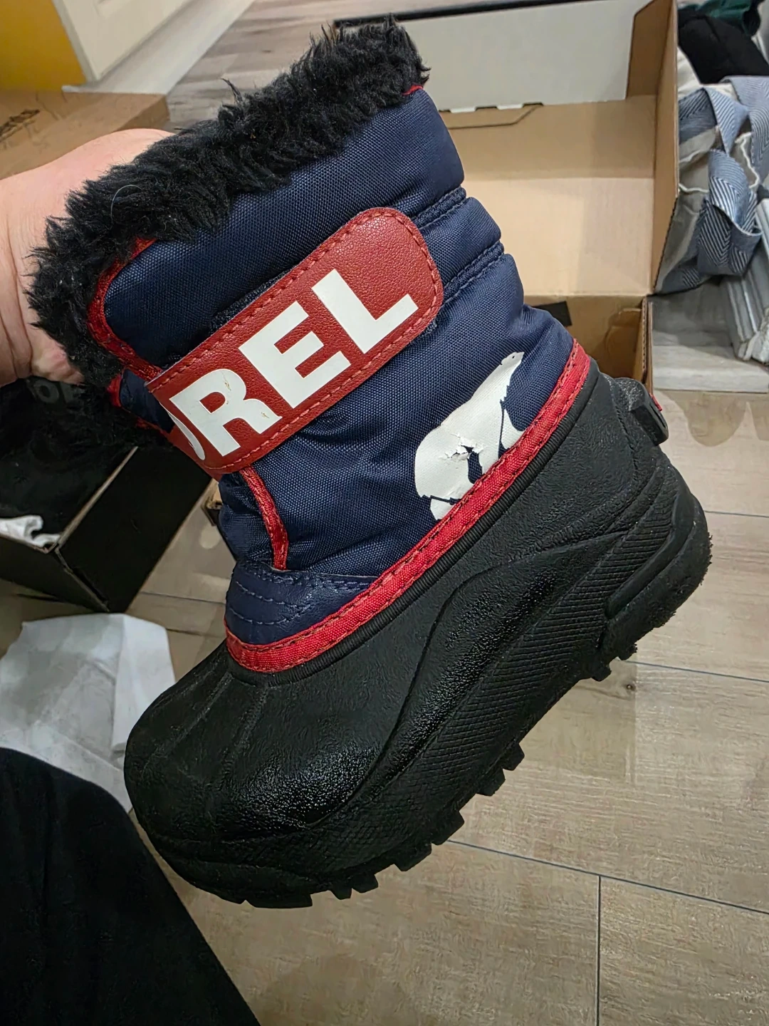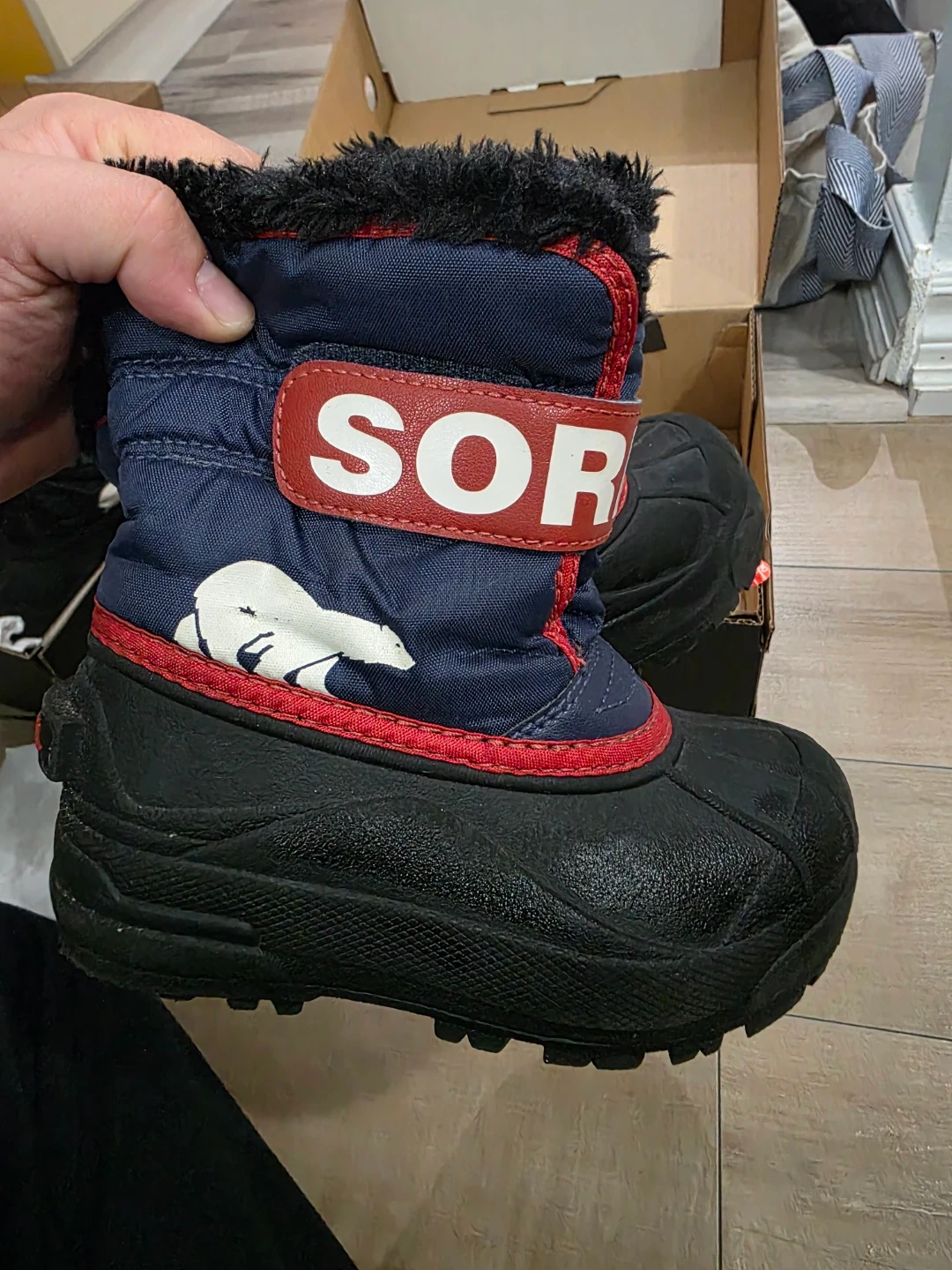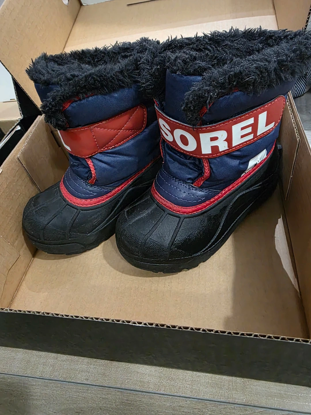 Selling a pair of Sorel winter boots in black, size 10. They are in good condition and come with the original box. Perfect for keeping your little one's feet warm this winter!