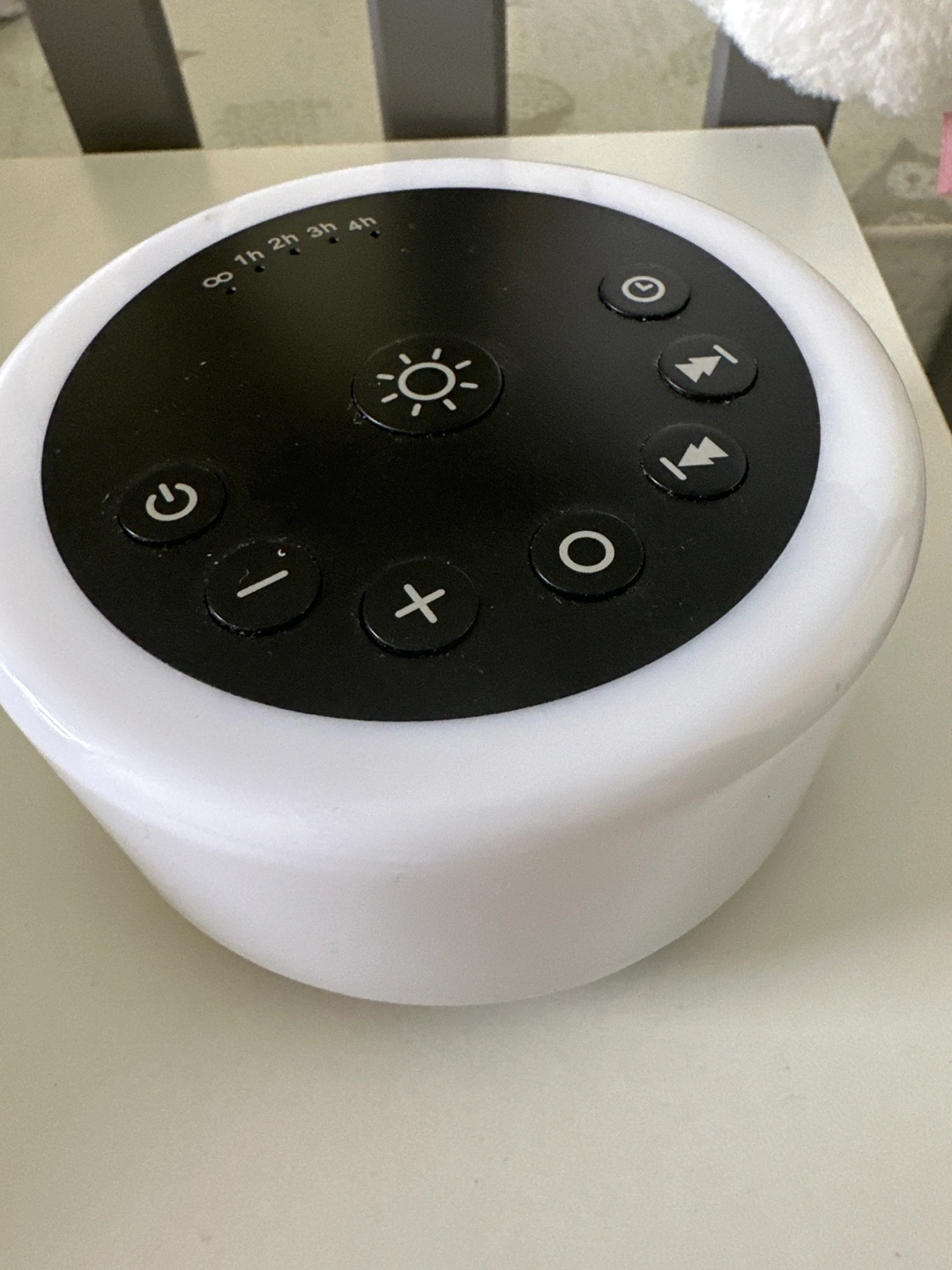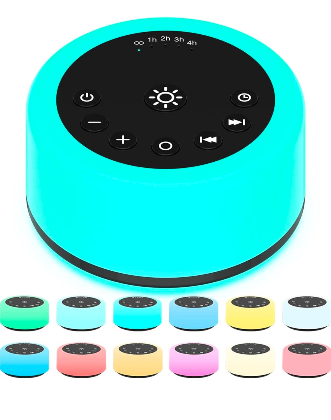 sleep sound machine. Features multiple sounds and colours. Timer function. Compact and easy to use.