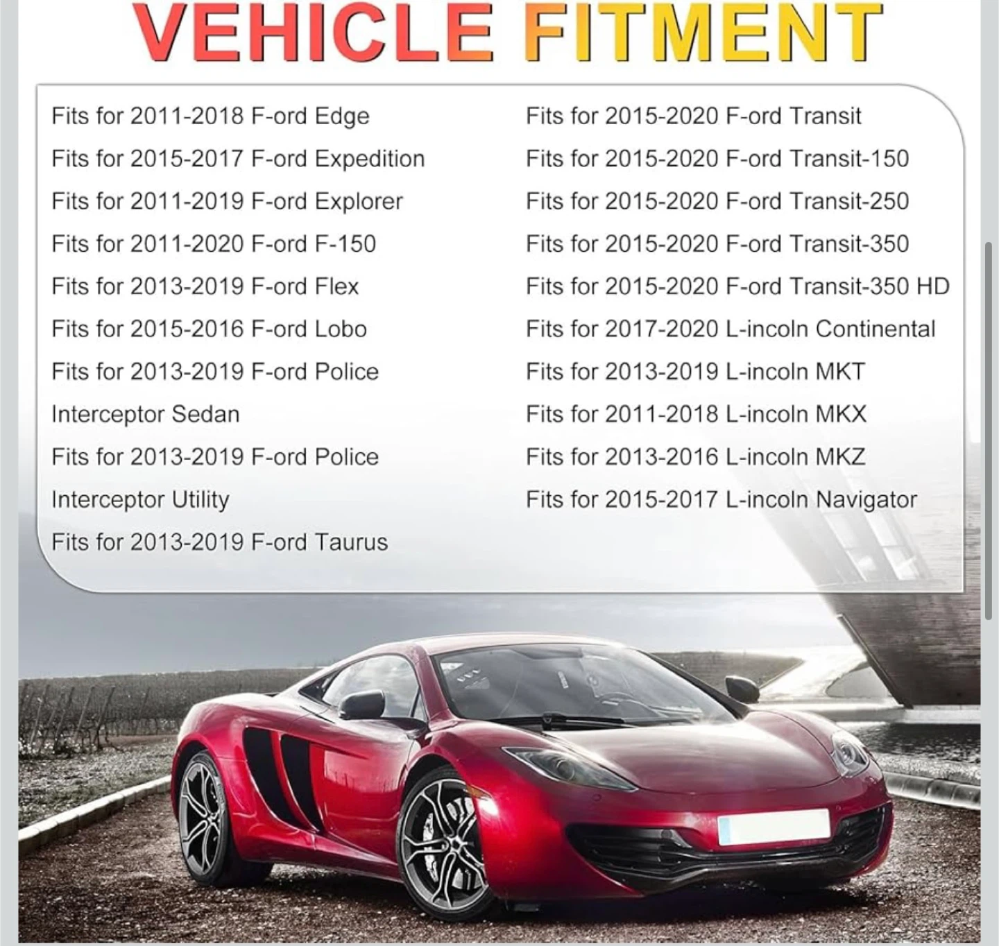 Selling a set of 4 camshaft timing VVT sprockets. These fit various Ford and Lincoln vehicles from 2011-2020, including Edge, Expedition, Explorer, F-150, Flex, and more. Please check the vehicle fitment in the photos to ensure compatibility with your car.
