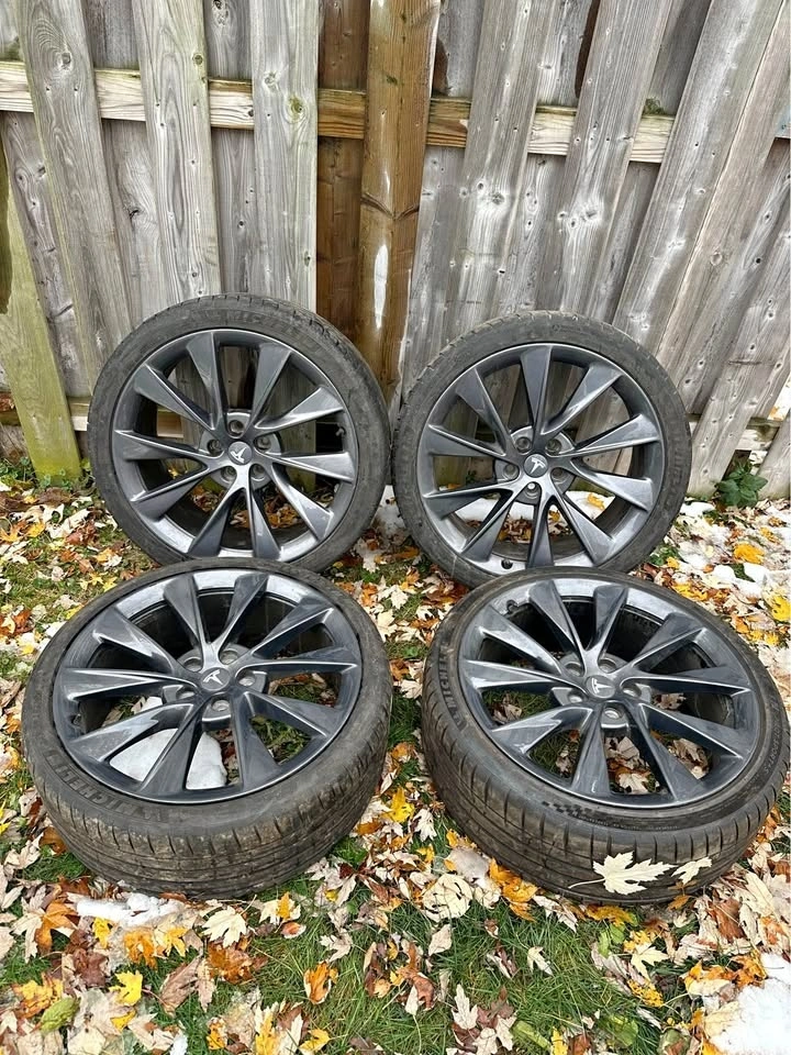 OEM 21” Tesla Model S Carbon Twin Turbine Rims w/ Michelin Tires
