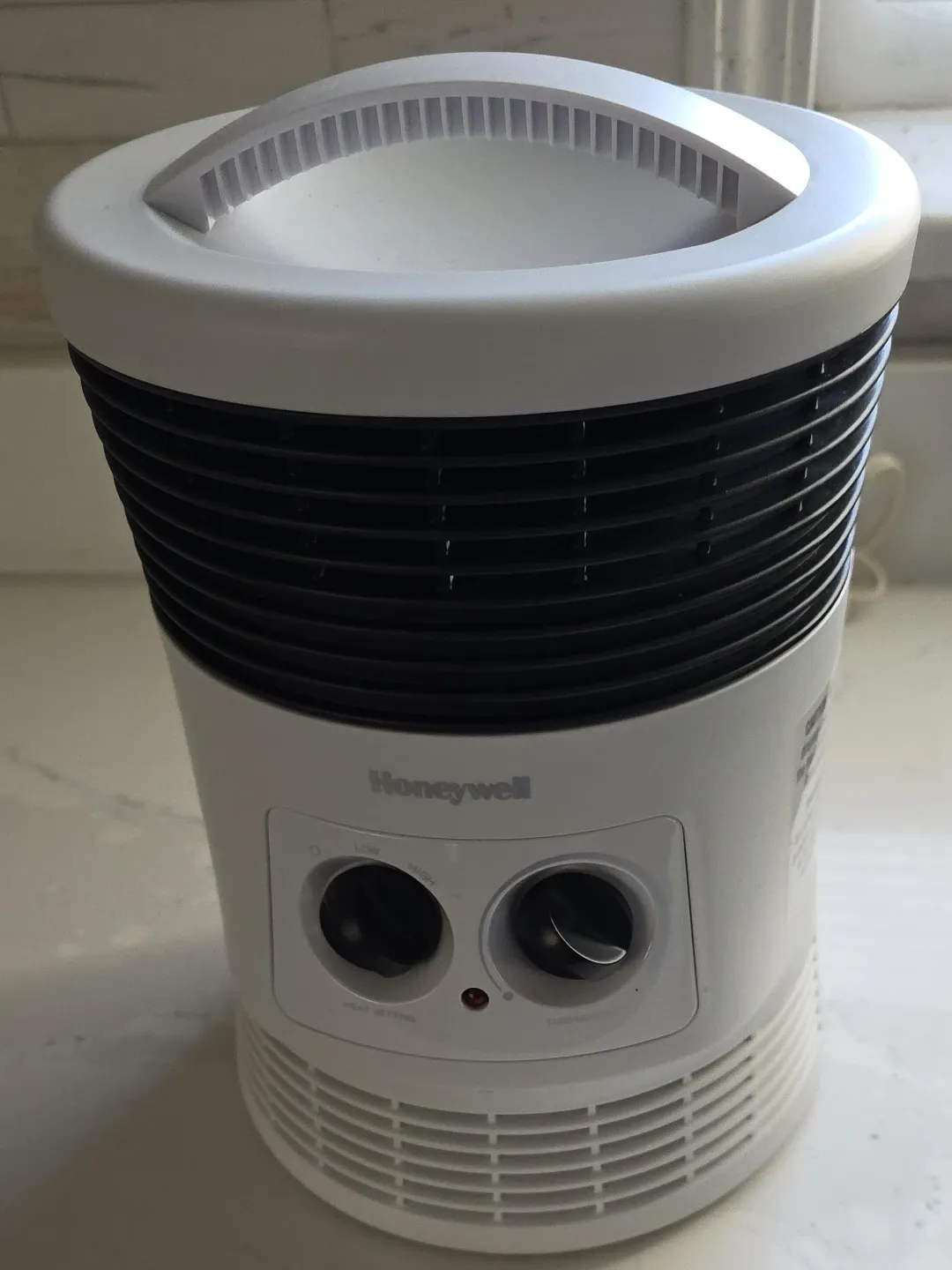 Selling a Honeywell space heater. It's white with black accents and has adjustable heat settings. Perfect for keeping cozy during the colder months!