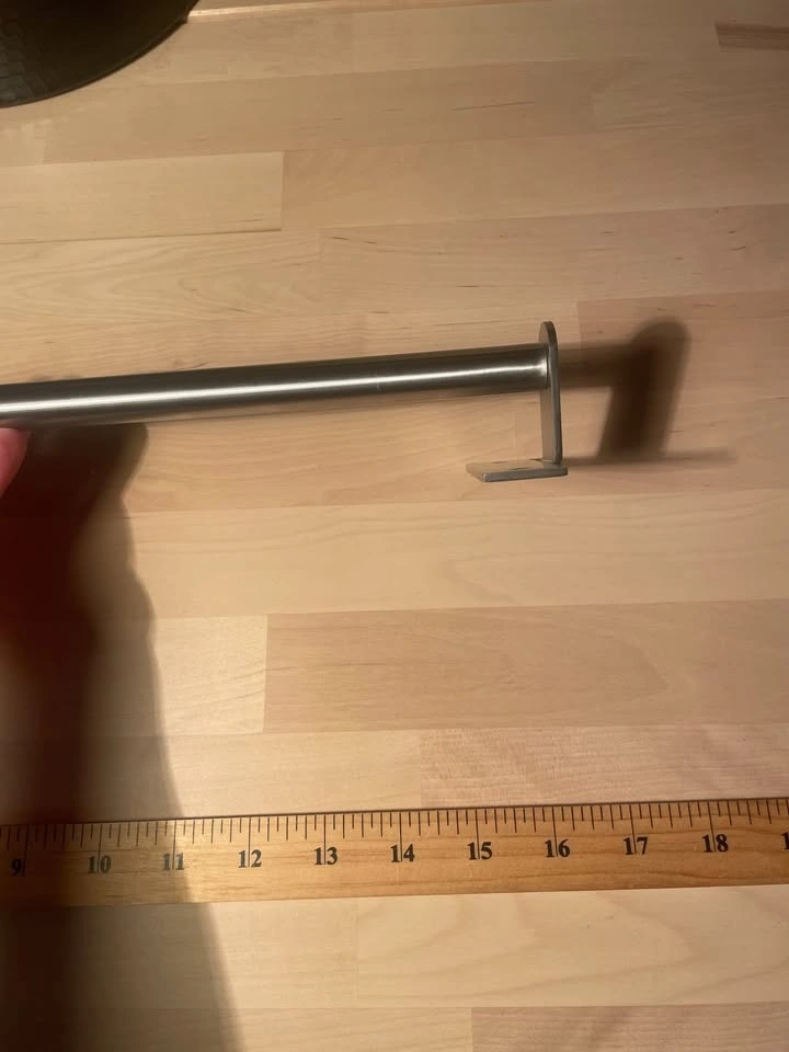 Stainless steel wall-mounted towel bar.