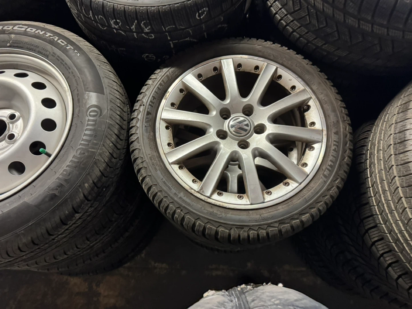 Winter and all season sets for sale. These are aftermarket and OEM wheels. They're in good condition with some minor scuffs from normal use. These rims are suitable for various vehicle makes and models.
