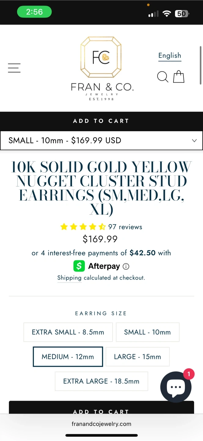 Buy & SellFran & Co. 10k Solid Gold Yellow Nugget Cluster Stud EarringsFran & Co. 10k Solid Gold Yellow Nugget Cluster Stud Earrings$80only got one pair of them These are 10k solid gold yellow nugget cluster stud earrings. comes w boxConditionGoodBrandFran & Co JewelryWHERE TO MEETinfront of the c train station in 163View MapSELLERverifiedcoryWashington Heights912 reviews3 chats·0 favorites·64 viewsSEND CHAT TO SELLERHi cory! I’m interested in your listing.Hi cory! I’m interested in your listing.Get the Karrot app to chatSign In to chat