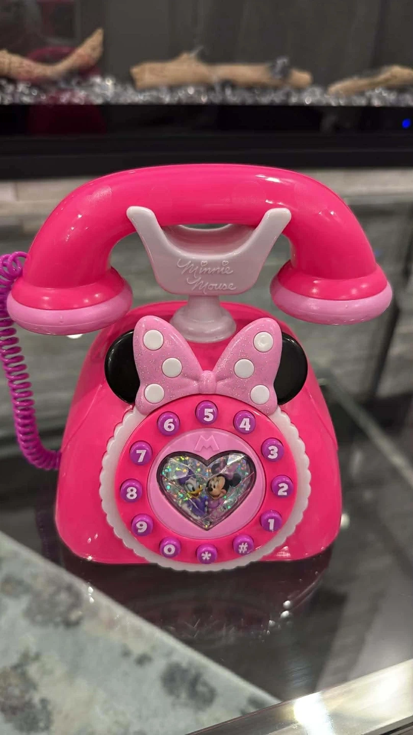 This fun pink toy telephone features Minnie Mouse graphics and a classic retro design. It's made of plastic and includes a coiled cord for the handset. Great for imaginative play for young fans!