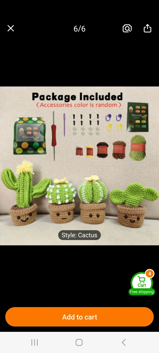 Buy & SellDIY Crochet Cactus KitDIY Crochet Cactus Kit$10Adorable crochet cactus kit. Includes yarn, crochet hook, buttons, and stuffing. Create three cute cacti. ConditionNewWHERE TO MEETCoxwell LibraryView MapSELLERWendyWoodbine Corridor291 review0 chats·0 favorites·9 viewsSEND CHAT TO SELLERHi Wendy! I’m interested in your listing.Hi Wendy! I’m interested in your listing.Get the Karrot app to chatSign In to chat